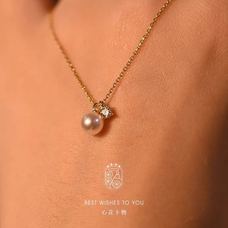 天然淡水珍珠项链单颗纯银简约法式锁骨链气质吊坠小粒轻奢女精致