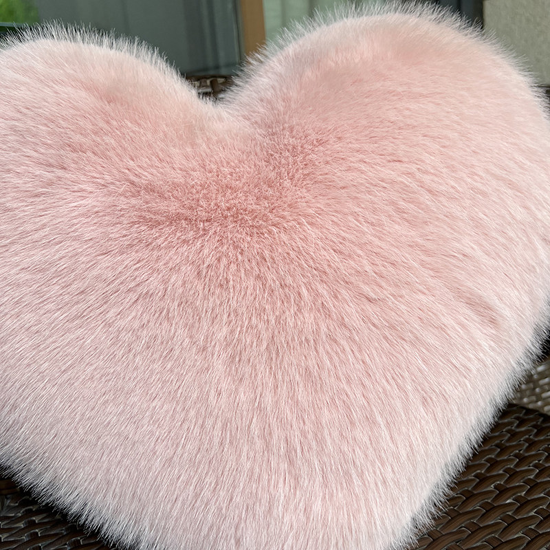 爱心形抱枕仿狐狸k毛轻奢仿皮草少女心沙发靠垫女生礼物长毛绒靠