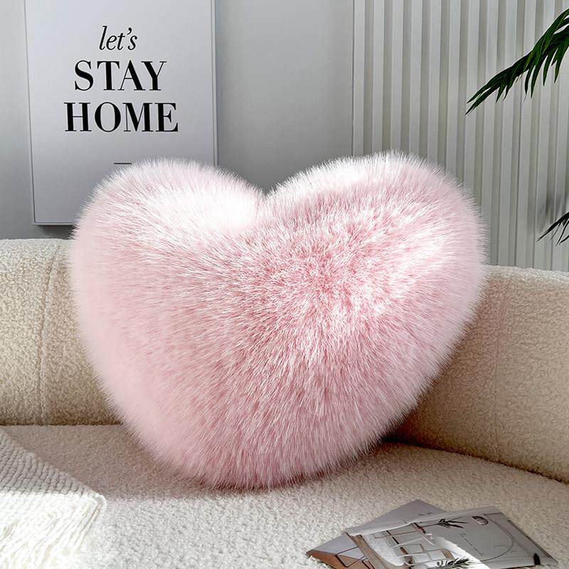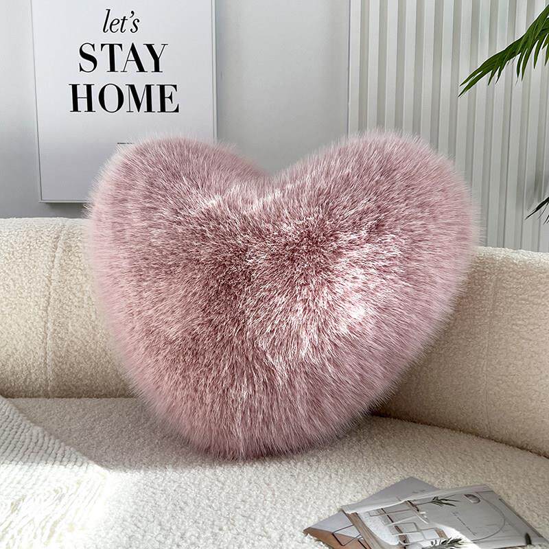 玫粉色爱心形抱枕仿狐狸毛玫红长毛绒少女心客厅沙发靠垫民宿轻奢