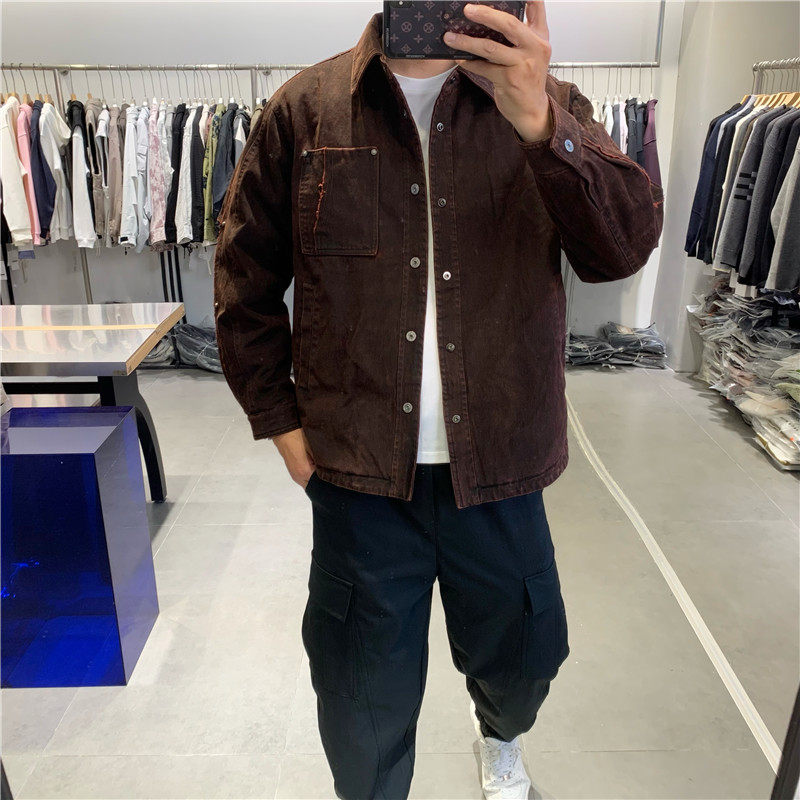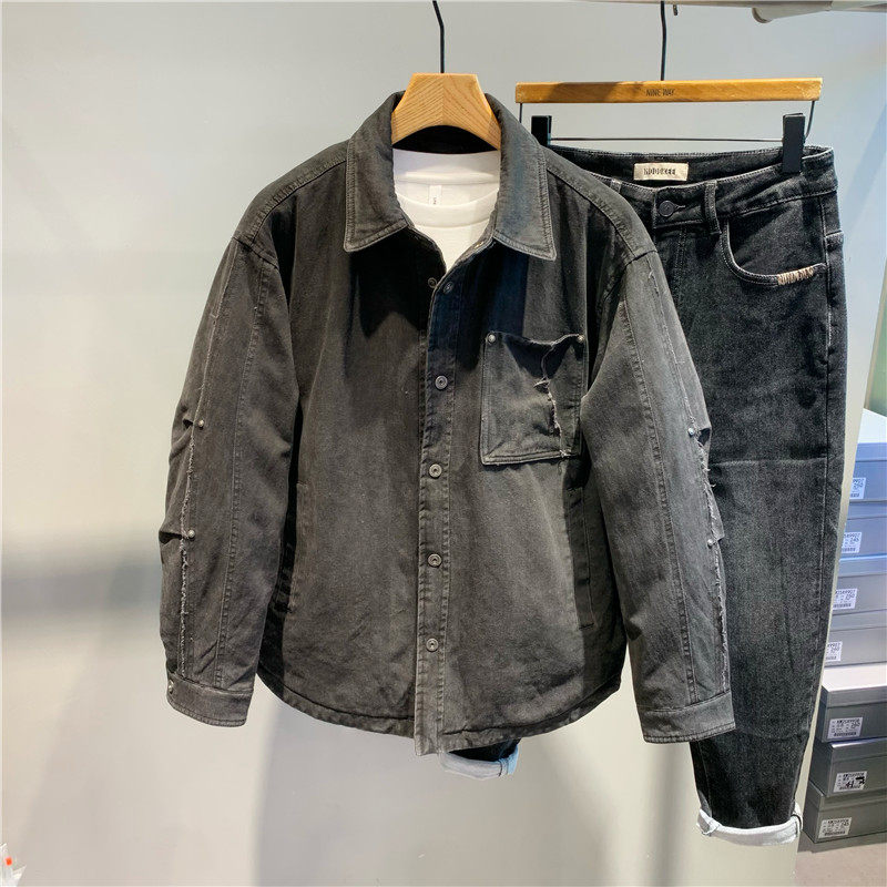 美式复古翻领短款羽绒服潮牌男士工装个性衬衫式白鸭绒保暖夹克潮