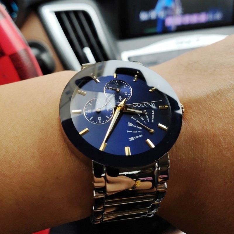 正品BULOVA宝路华男表蓝盘间金钢带逆跳无边框防水手表98C123现货