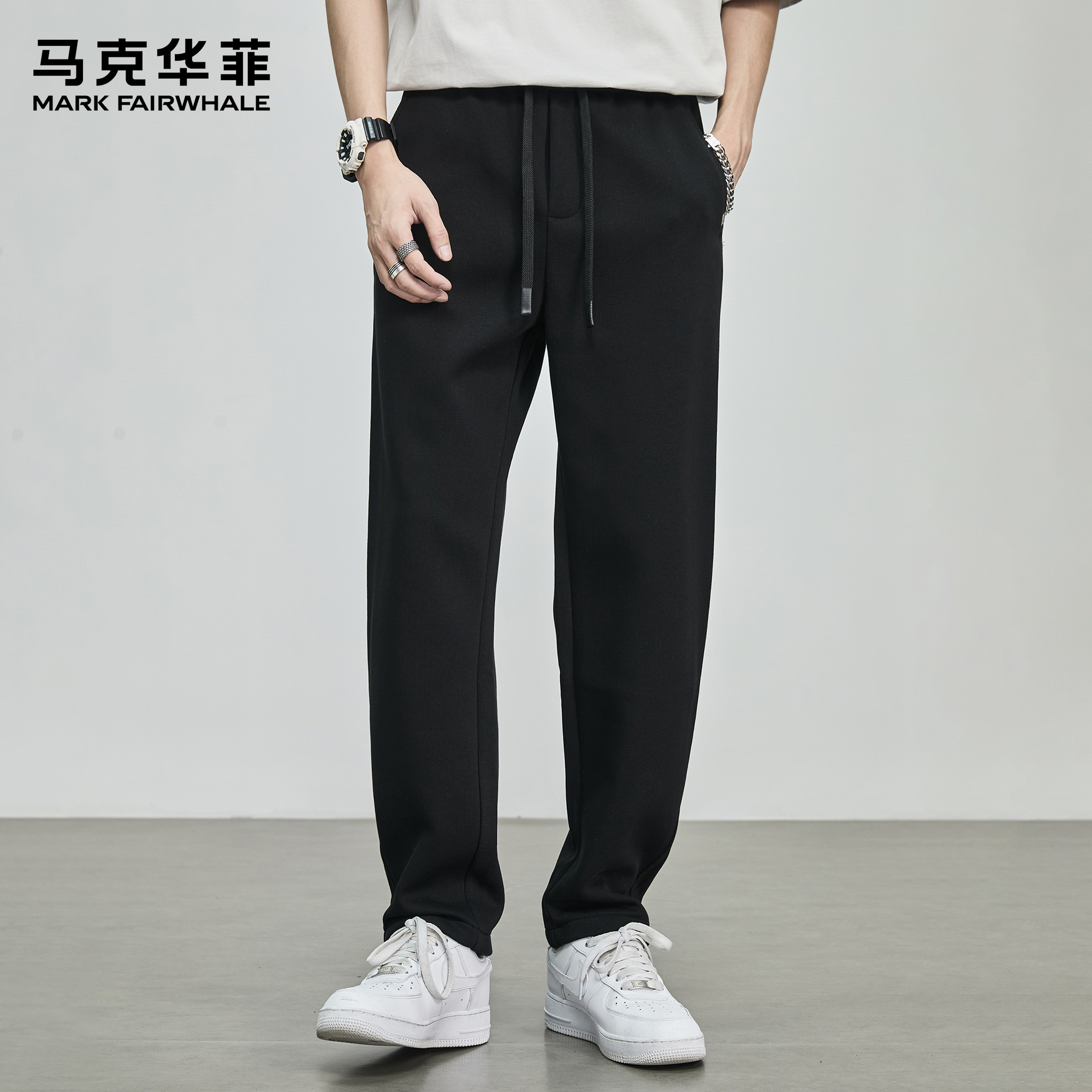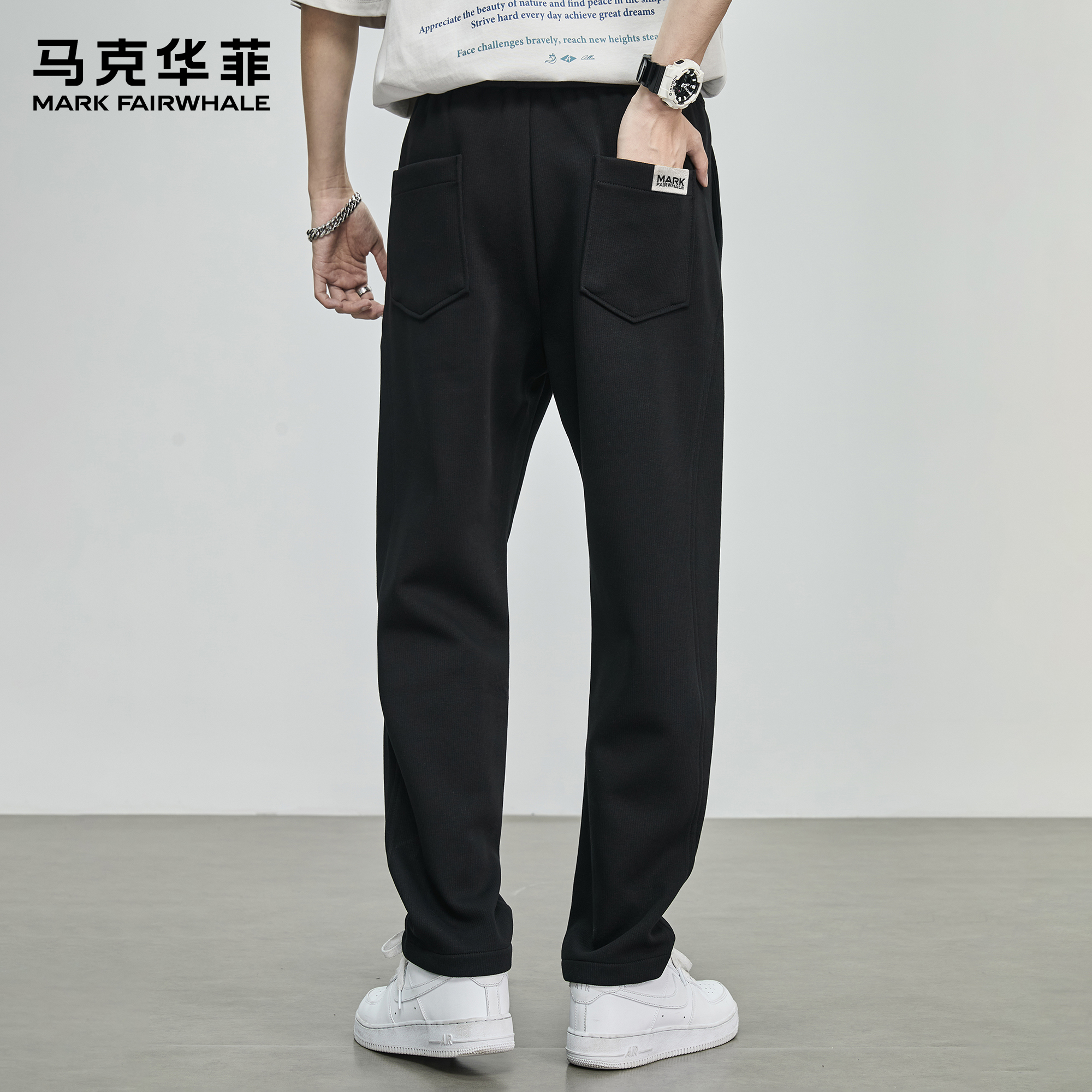 马克华菲卫裤男秋冬季加绒潮牌美式复古休闲裤纯色直筒宽松运动裤