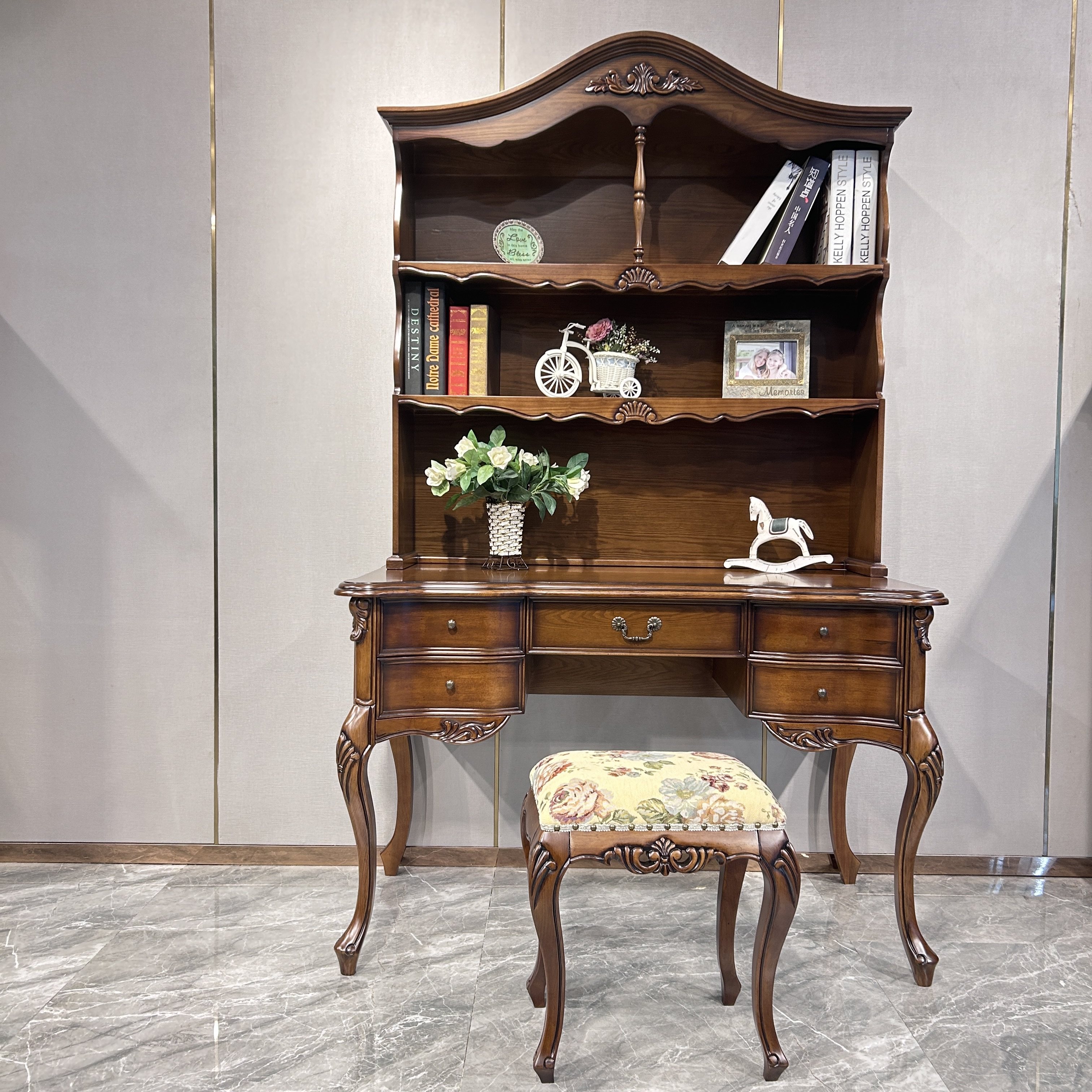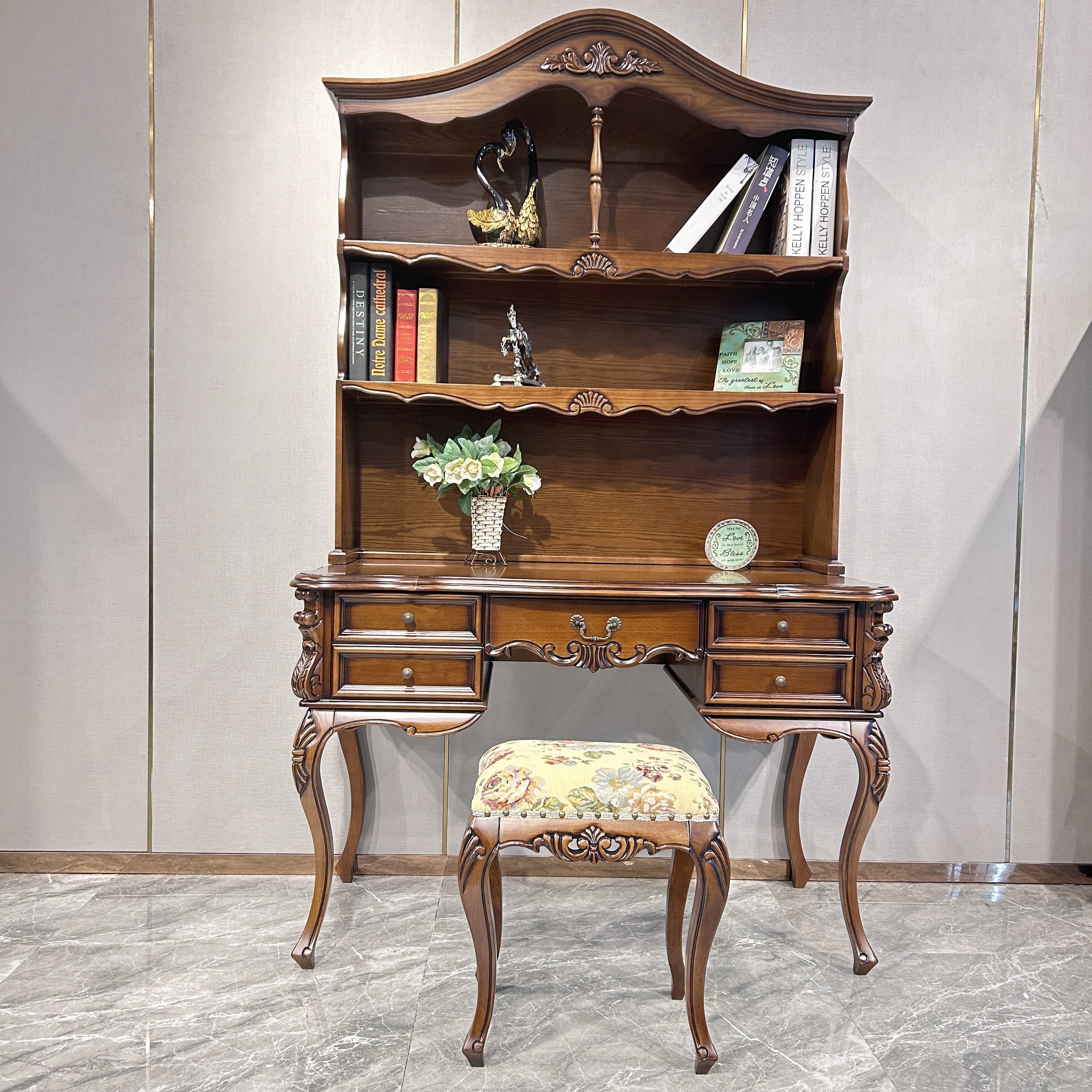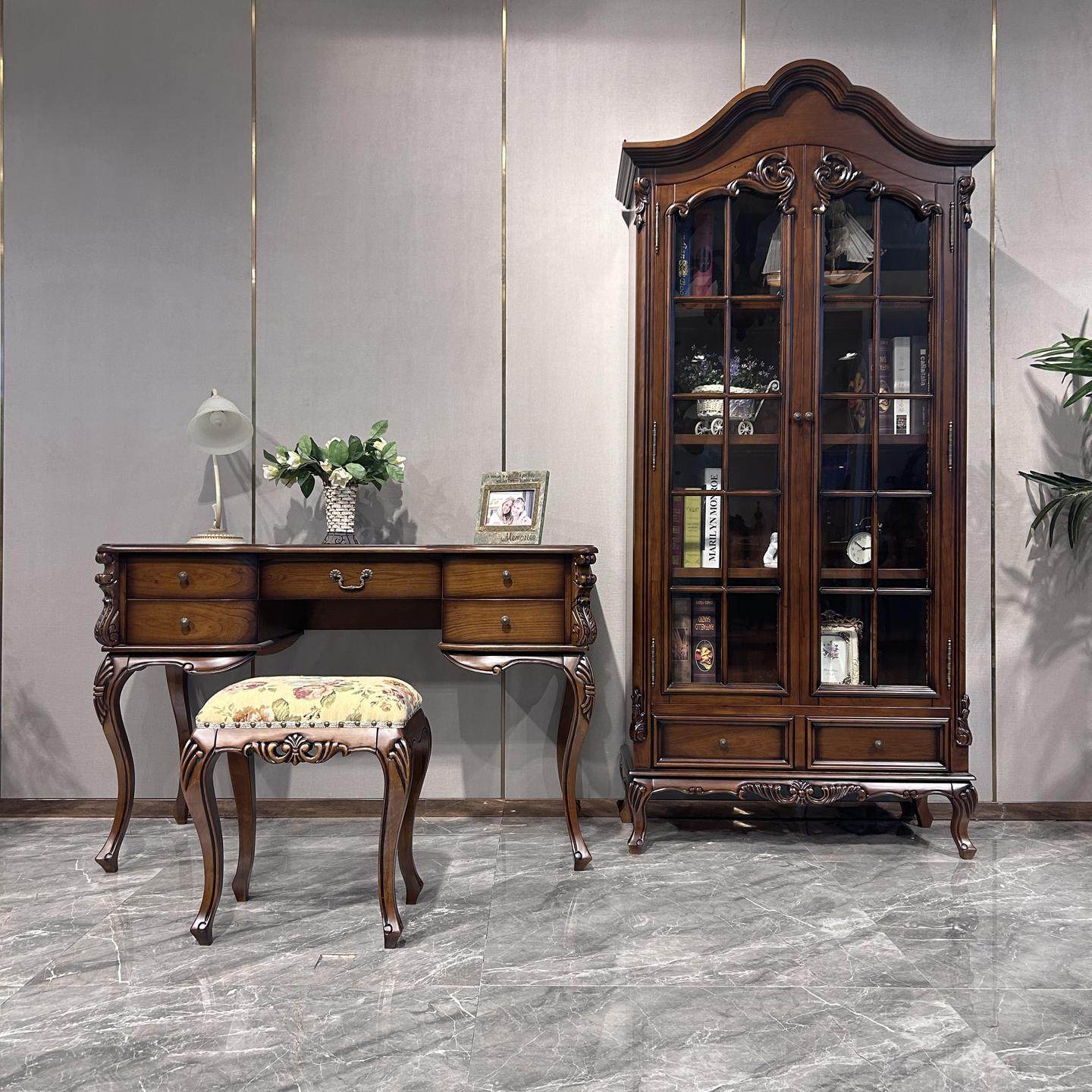 美式书桌书柜一体家具