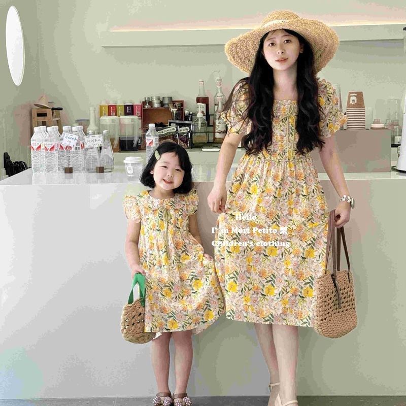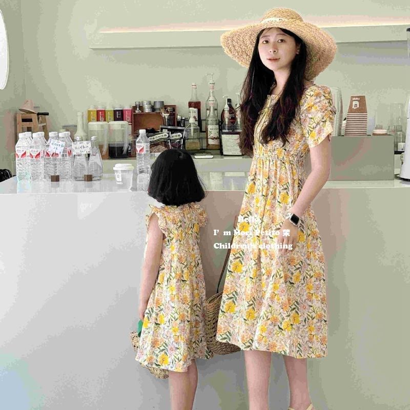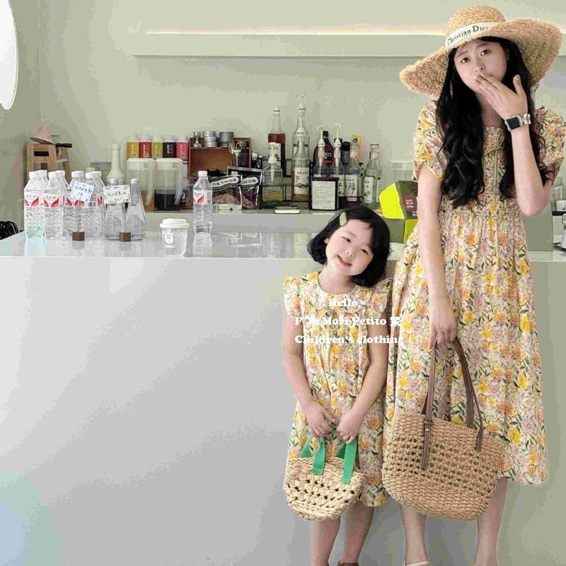 亲子装2024新款夏季母女装碎花连衣裙洋气韩版女童公主裙子小清新