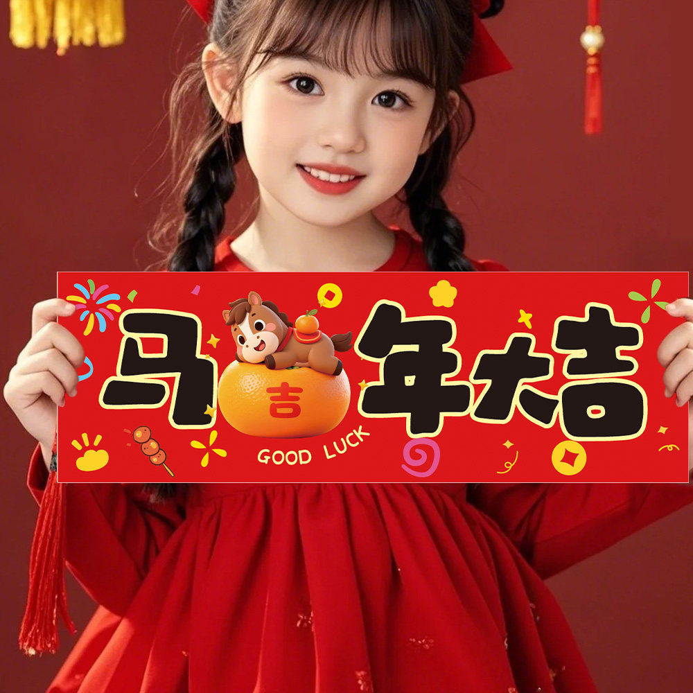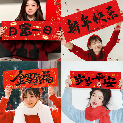 新年快乐手持拍照打卡道具儿童幼儿园学校教室元旦节晚会舞台布置