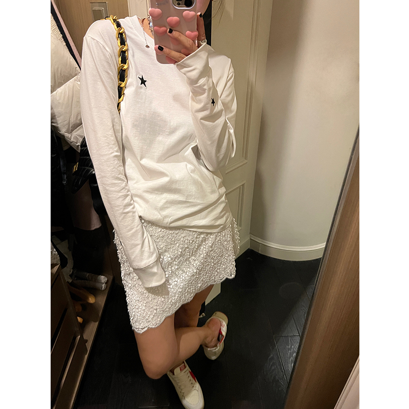落落狷介 打底衫女秋冬2025年新款白色T恤卫衣宽松圆领上衣小个子
