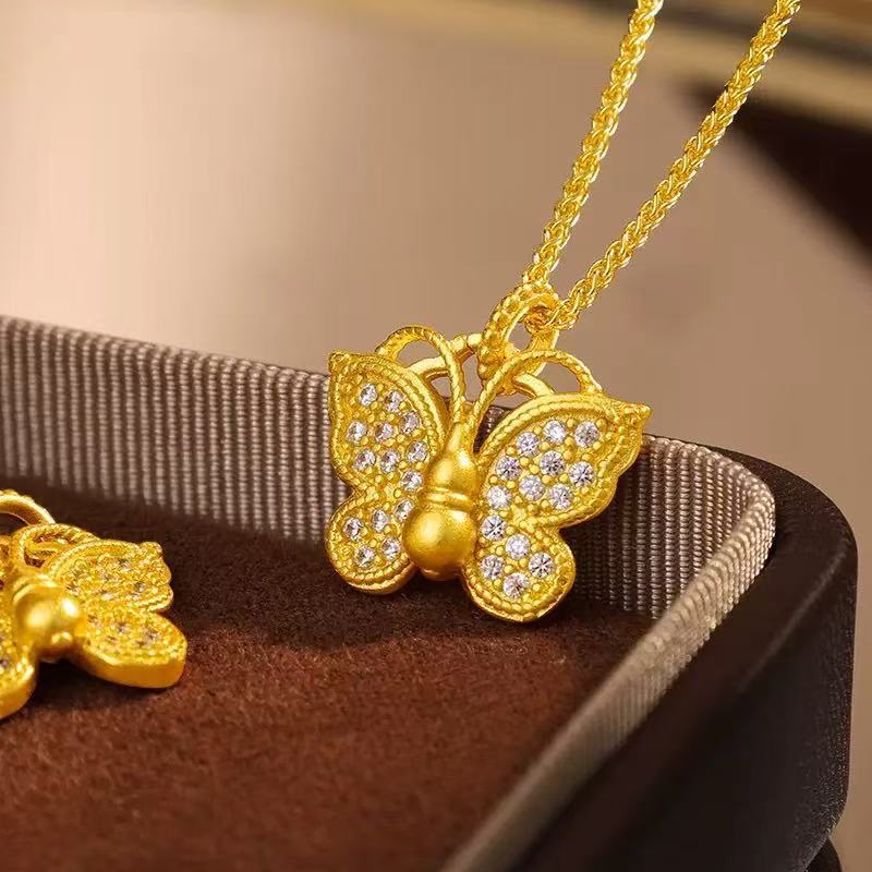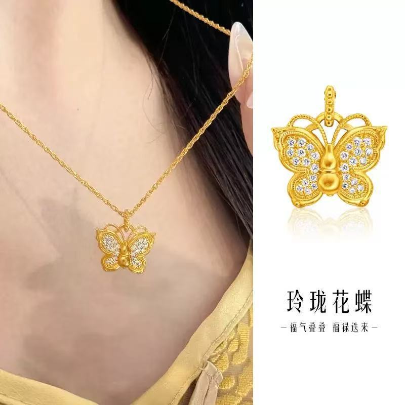 金店同款故宫玲珑花蝶项链吊坠韩铜镀沙金镶钻拉丝蝴蝶挂坠女
