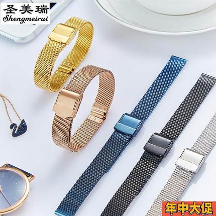 不锈钢表带超薄钢带适配CK罗西尼DW阿玛尼精钢金属女表链8 10 14