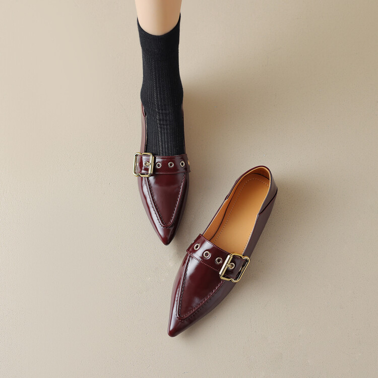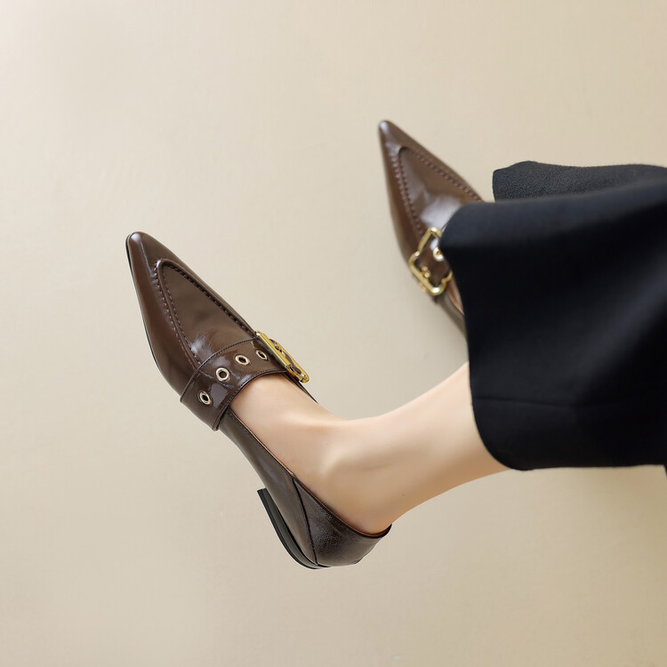 2024新款真皮牛皮单鞋女金色尖头低跟平底深口低帮鞋气质百搭女式