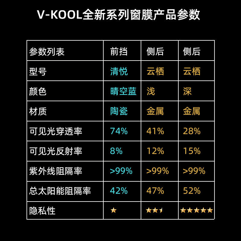 VKOOL威固清悦+云栖汽车贴膜陶瓷膜玻璃贴膜太阳膜车窗防晒隔热膜