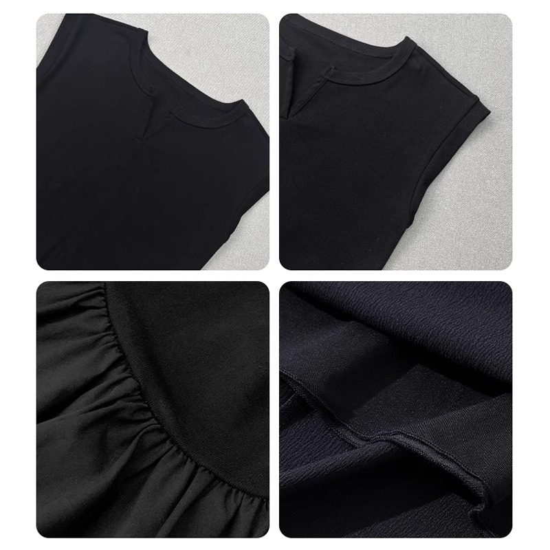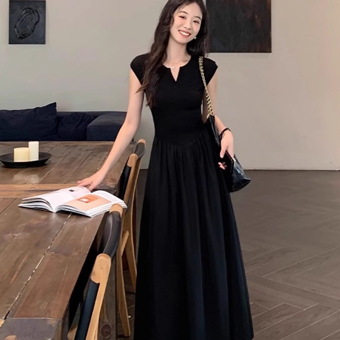 黑色无袖背心V领高级感连衣裙夏季新款修身显瘦垂感小个子A字长裙