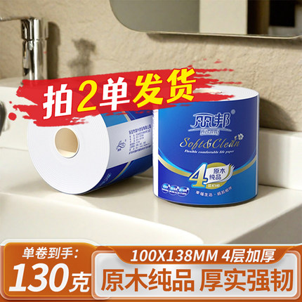 丽邦卷纸130克家用大卷厕纸有芯卷筒纸卫生用擦手原木纯品纸巾