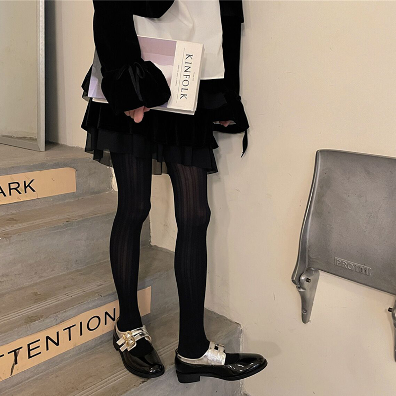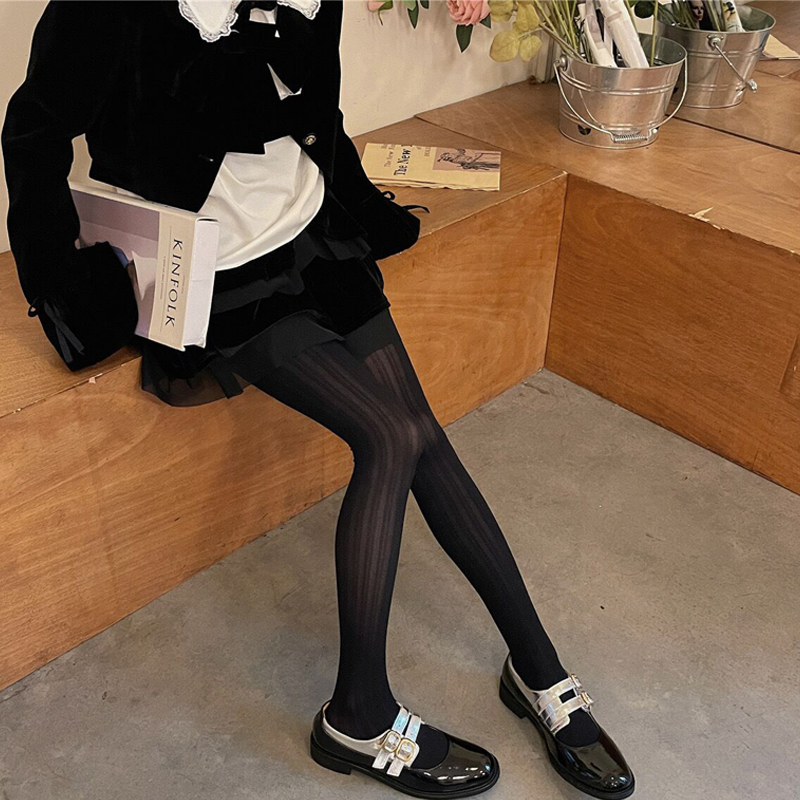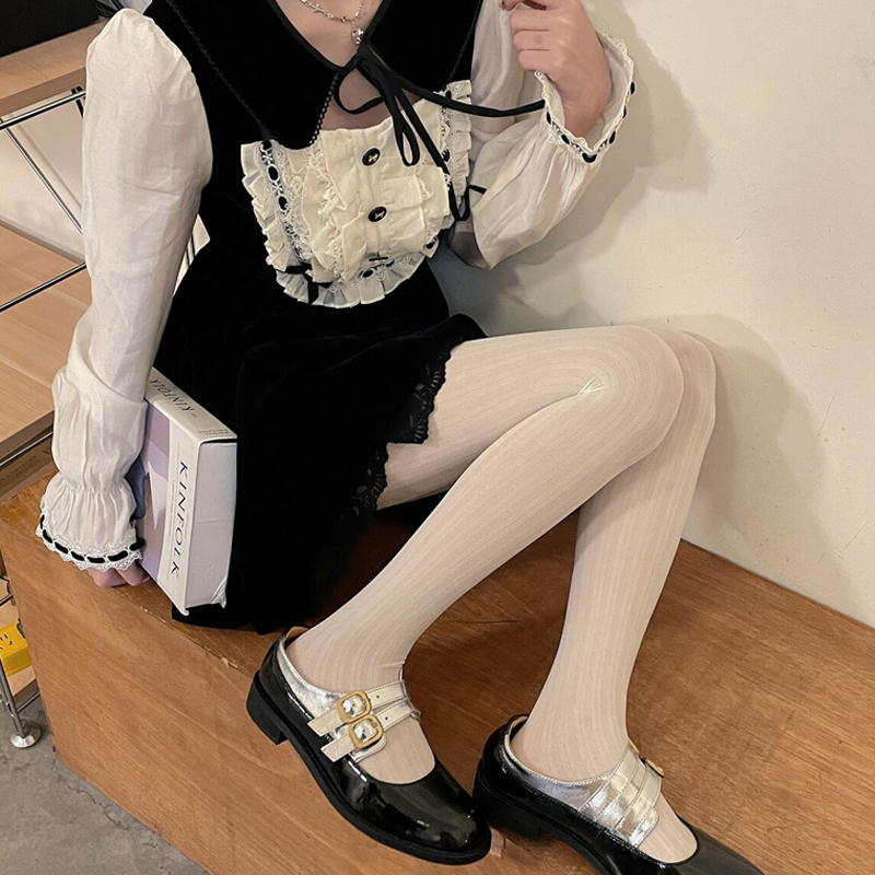 春夏薄款白丝女日系Lolita甜美白色连裤袜竖条纹打底袜子JK黑丝袜