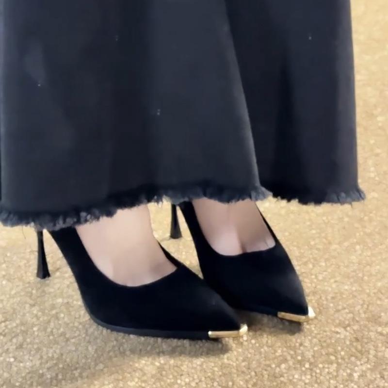 黑色高跟鞋女设计感金属尖头细跟职业通勤百搭不累脚单鞋