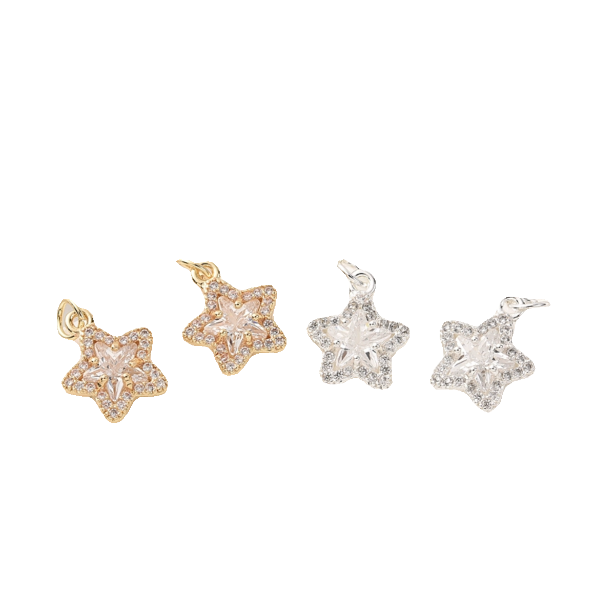 14K包金微镶锆石立体五角星吊坠手工diy银色项坠小挂件吊饰材料