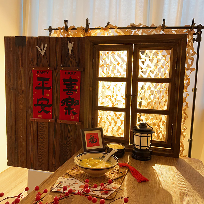 做旧假窗户框拍照道具复古新年怀旧氛围感美食实木板拍摄背景板