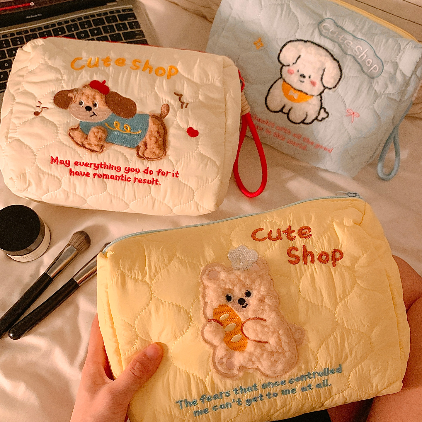 可爱刺绣小狗手提化妆包女便携大容量护肤品刷子收纳袋旅行洗漱包