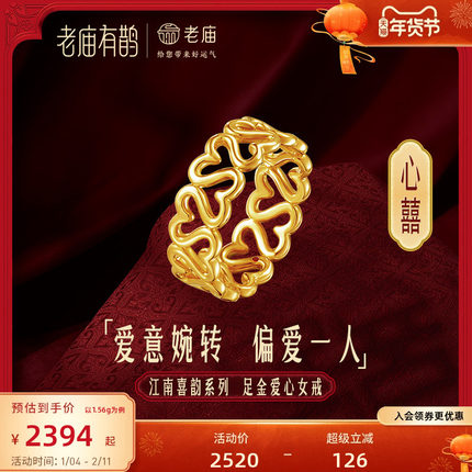 老庙有鹊黄金足金心囍爱心女戒