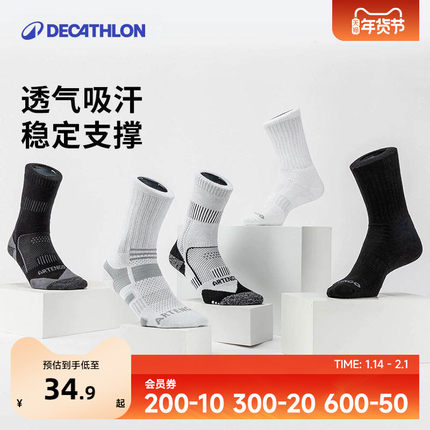迪卡侬篮球袜男短袜健身长袜毛巾底袜子长筒高筒羽毛球运动袜OVA1