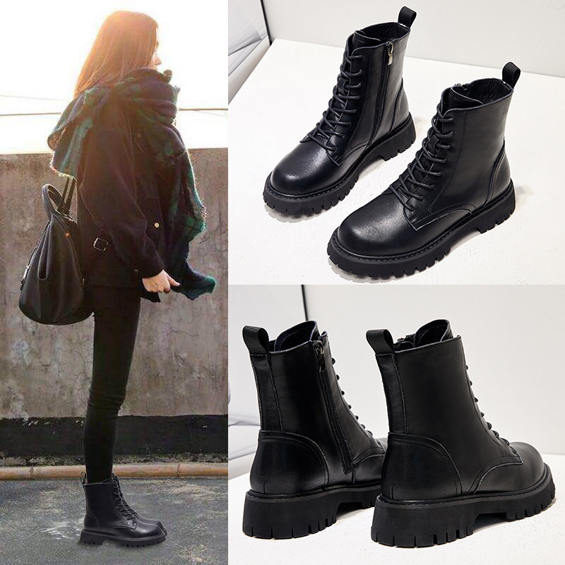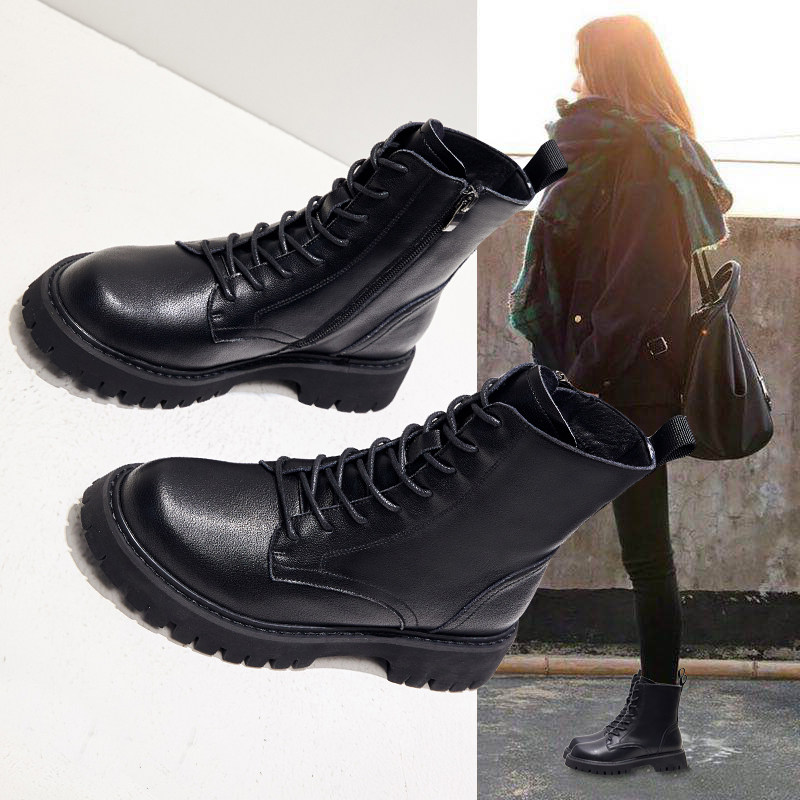 真皮马丁靴女英伦风2025新款厚底春秋单靴百搭加绒短靴棉鞋女冬