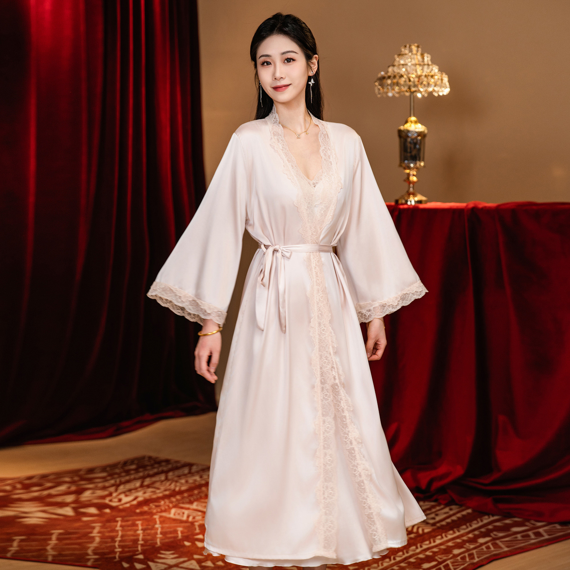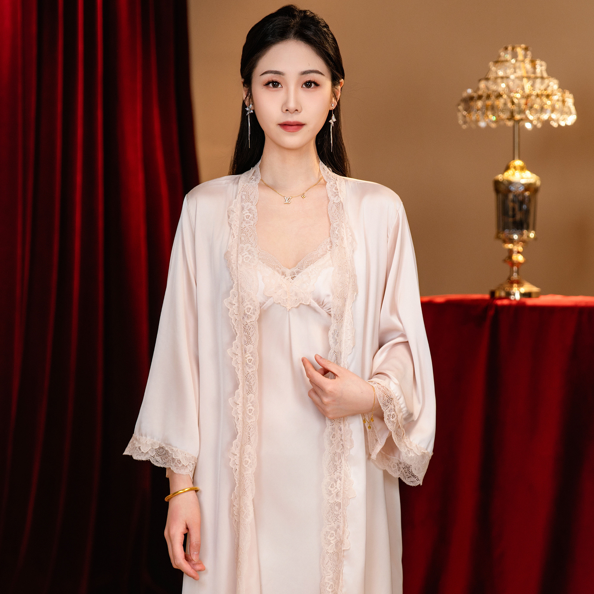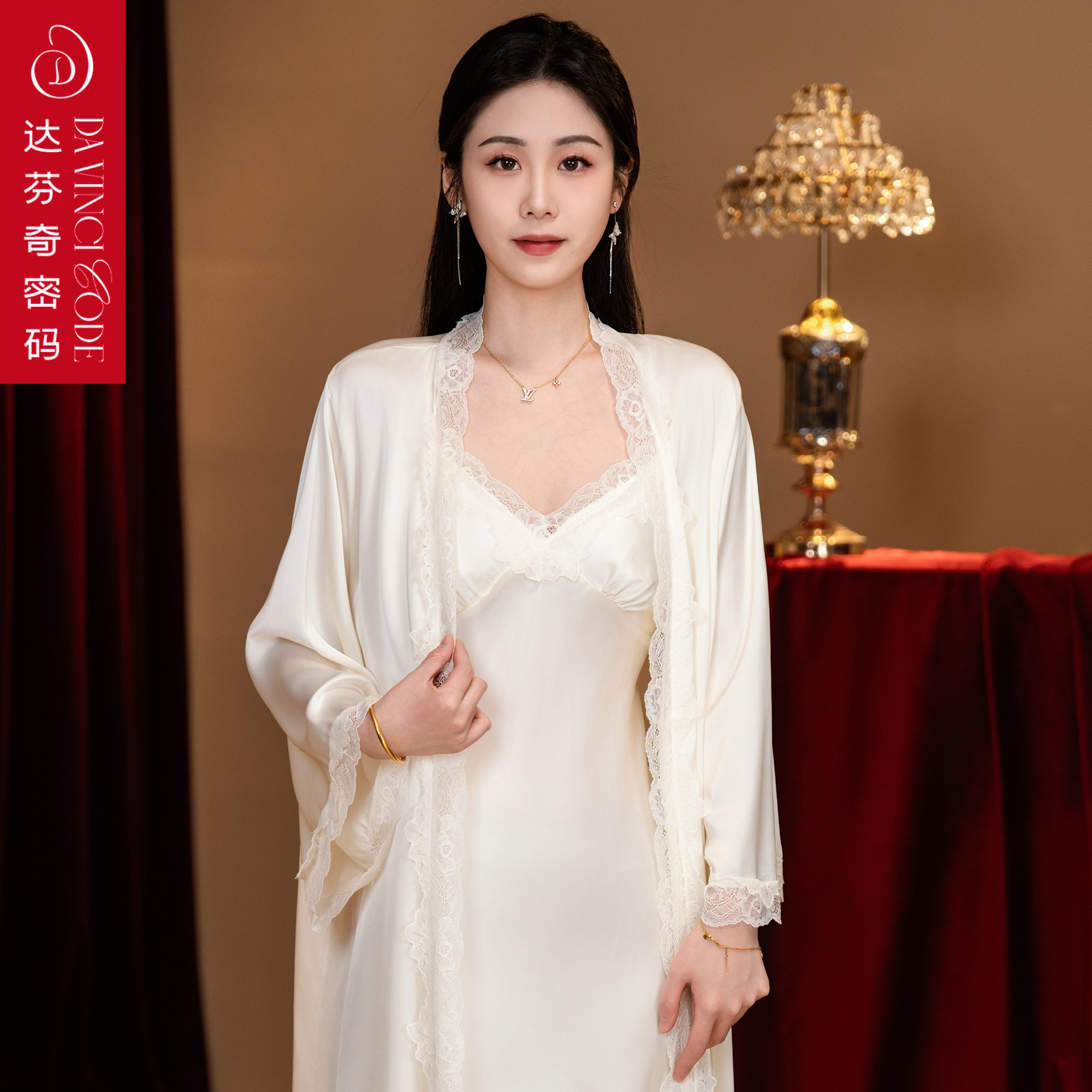 达芬奇密码2026新女睡裙吊带蕾丝带胸垫性感白色漂亮出门睡衣晨袍