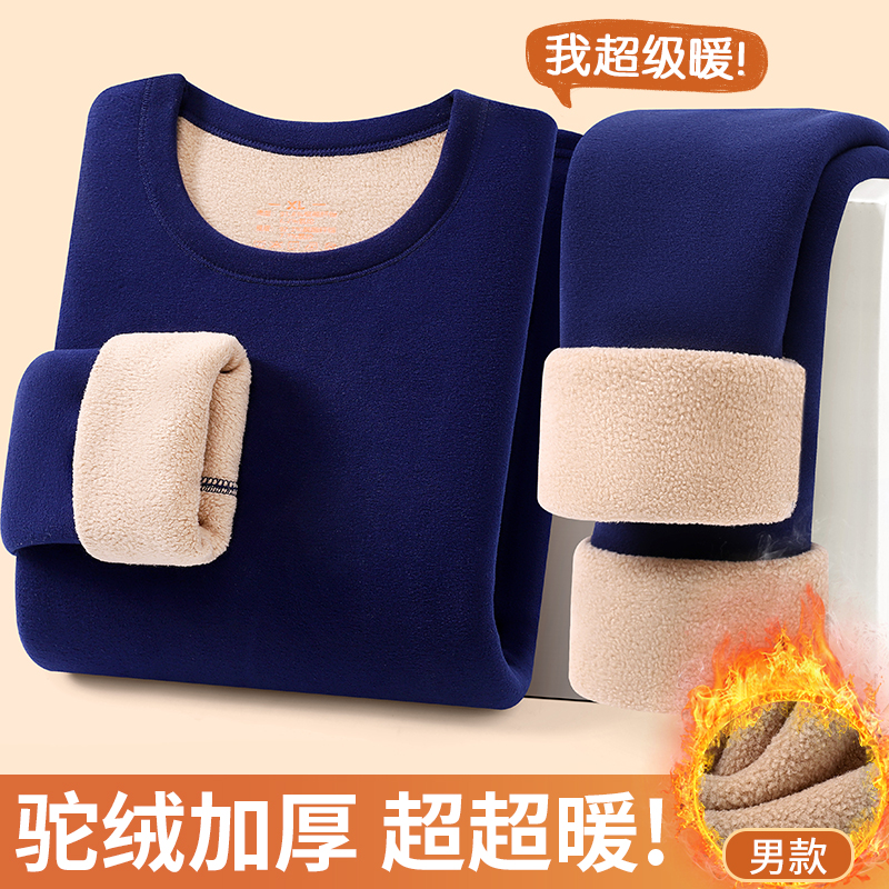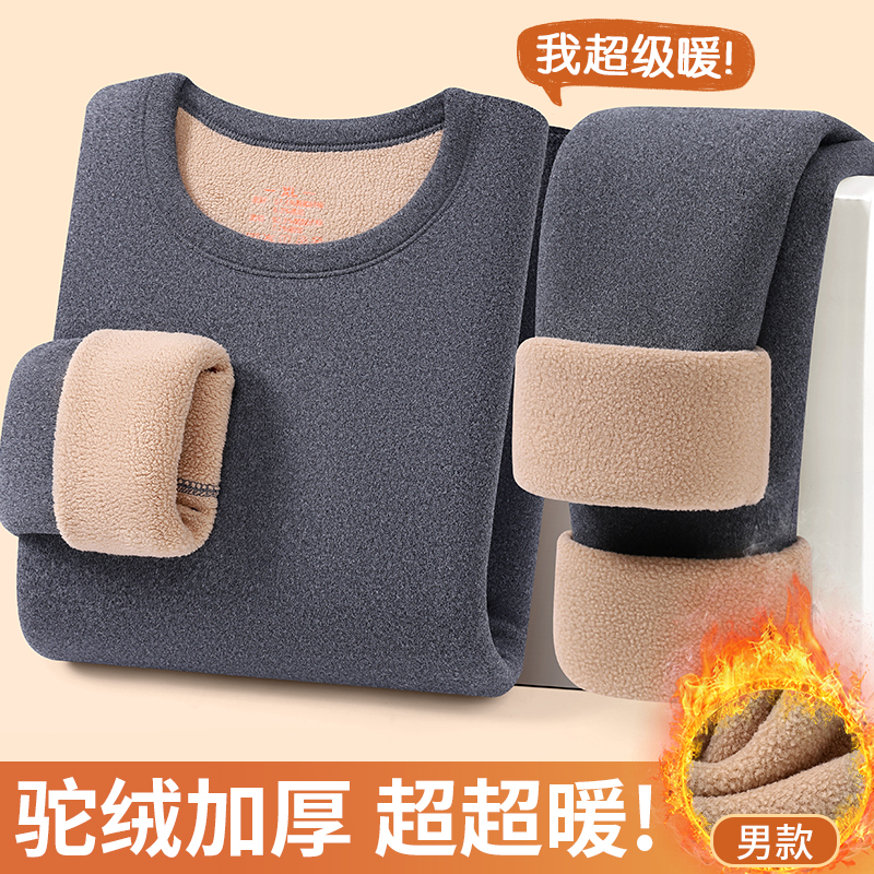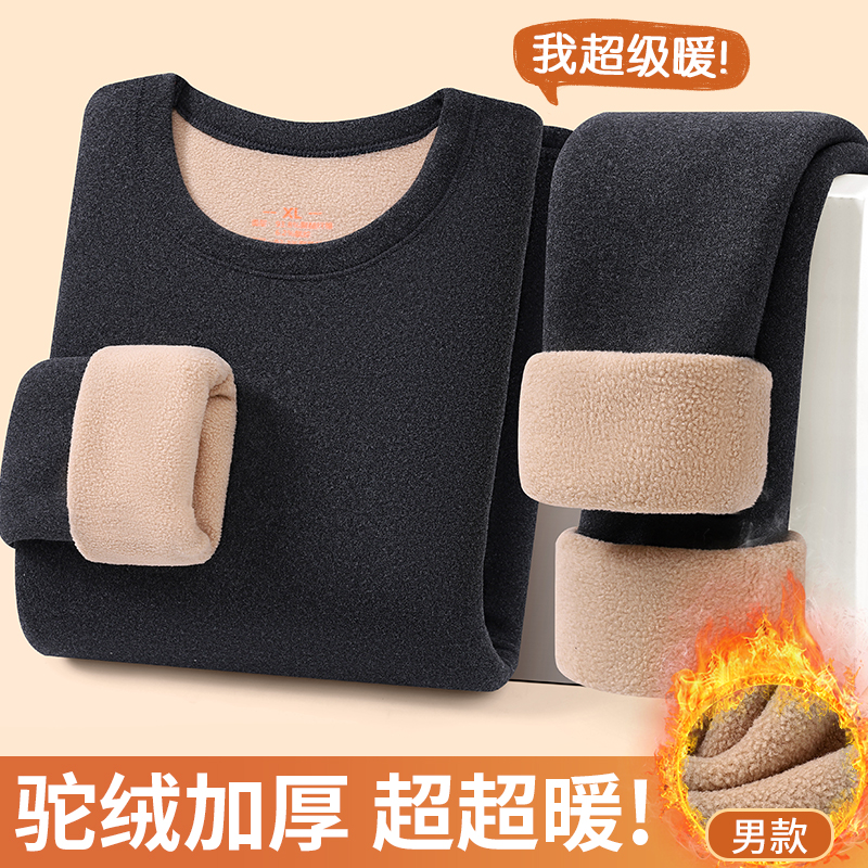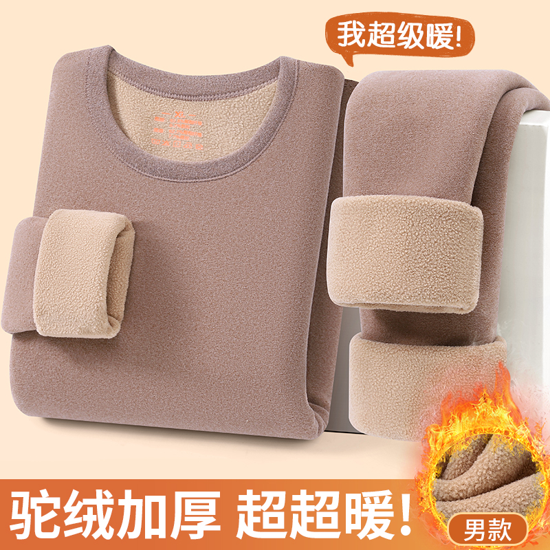 冬季新款保暖秋衣秋裤男加绒加厚驼绒套装中老年发热防寒新款打底