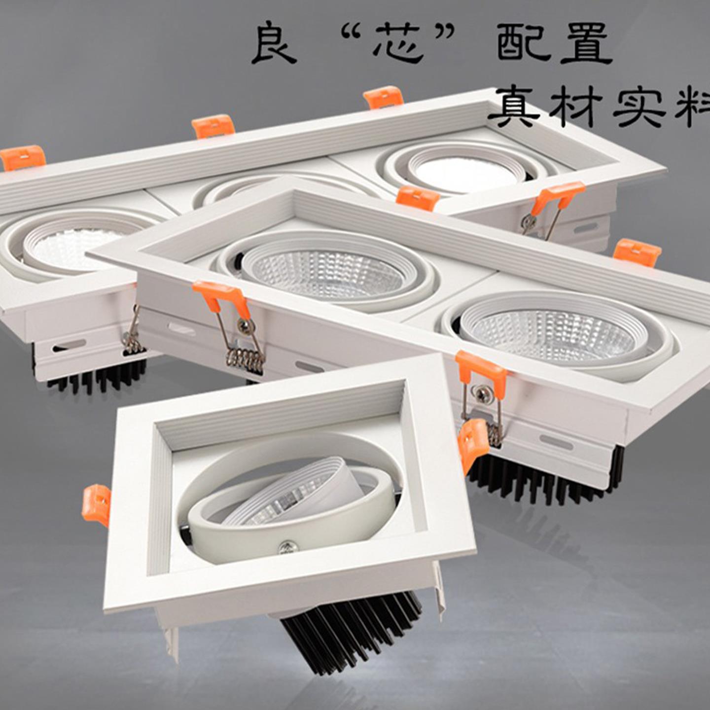 LED射灯双头斗胆灯嵌入式格栅灯单头三头家装商用cob天花方形筒灯