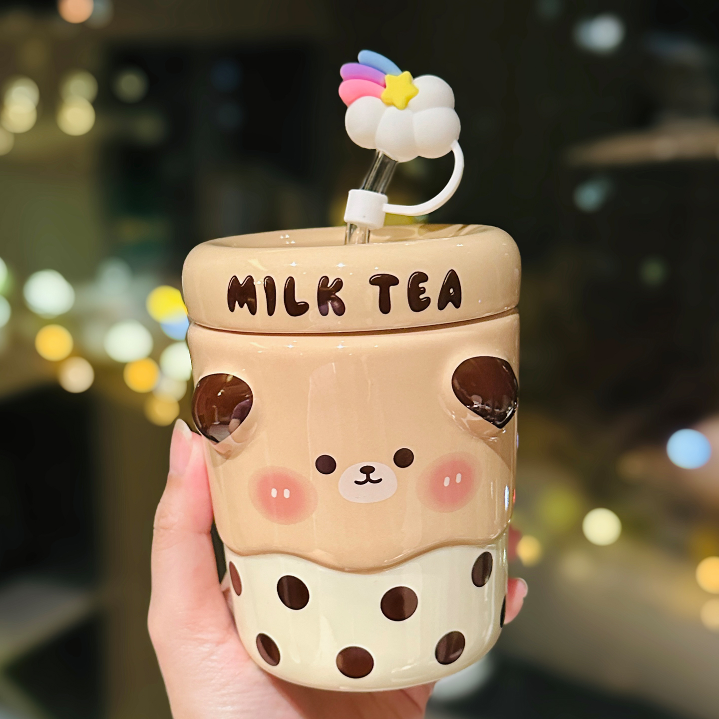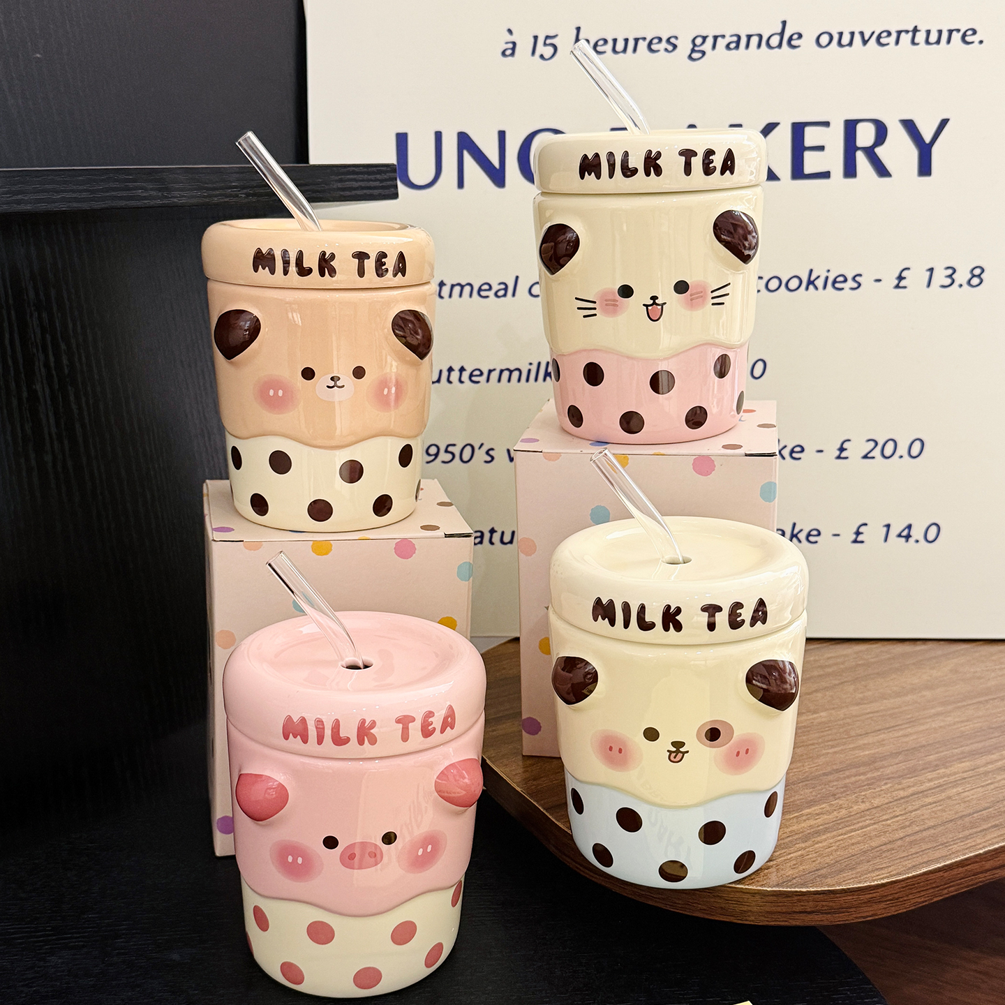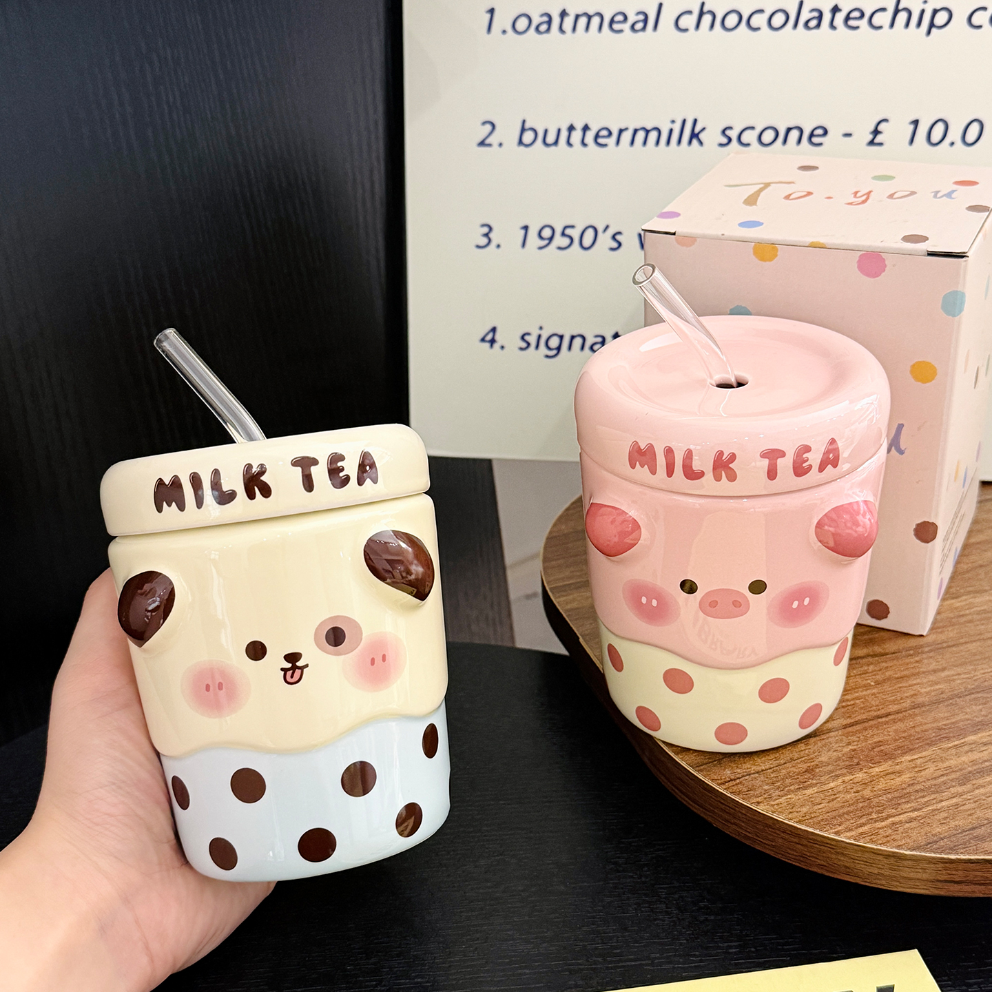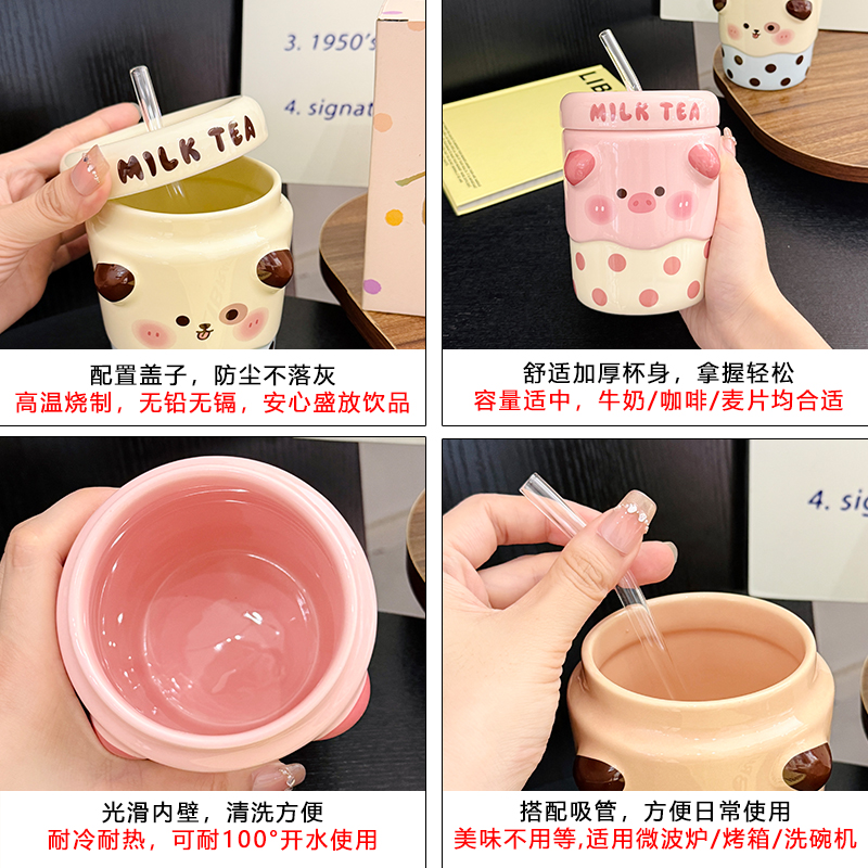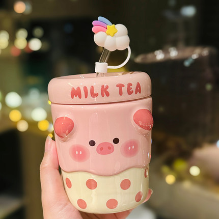 超好看的高颜值女生马克杯喝水吸管杯带盖办公室陶瓷杯子生日礼物