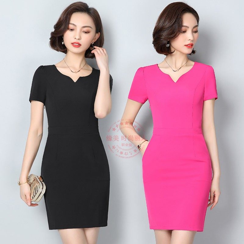 秋冬新款有口袋职业连衣裙夏短袖OL工作服修身大码气质女装包臀裙