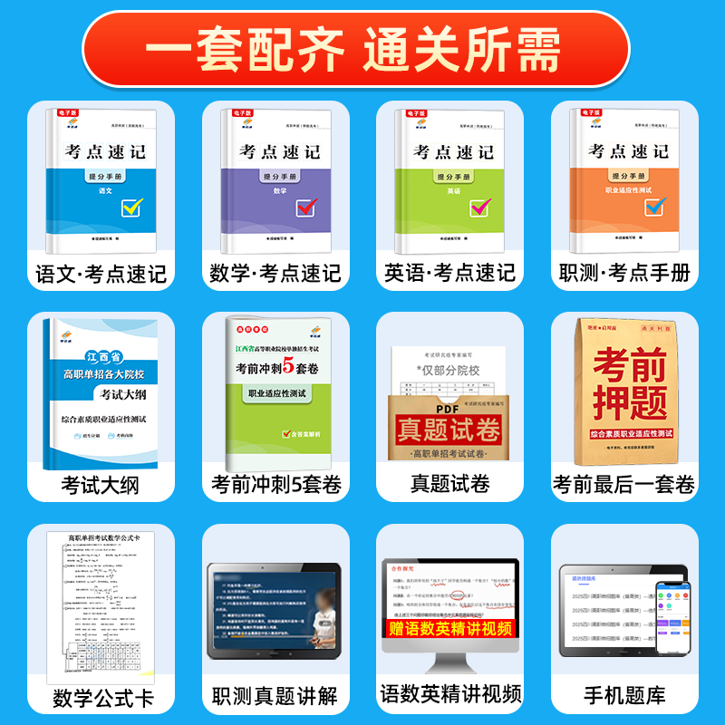 送真题】江西单招考试复习资料2026年综合素质语文数学单招考试真题2025江西高职单招职业适应性技能测试专项题库教材试卷春季高考