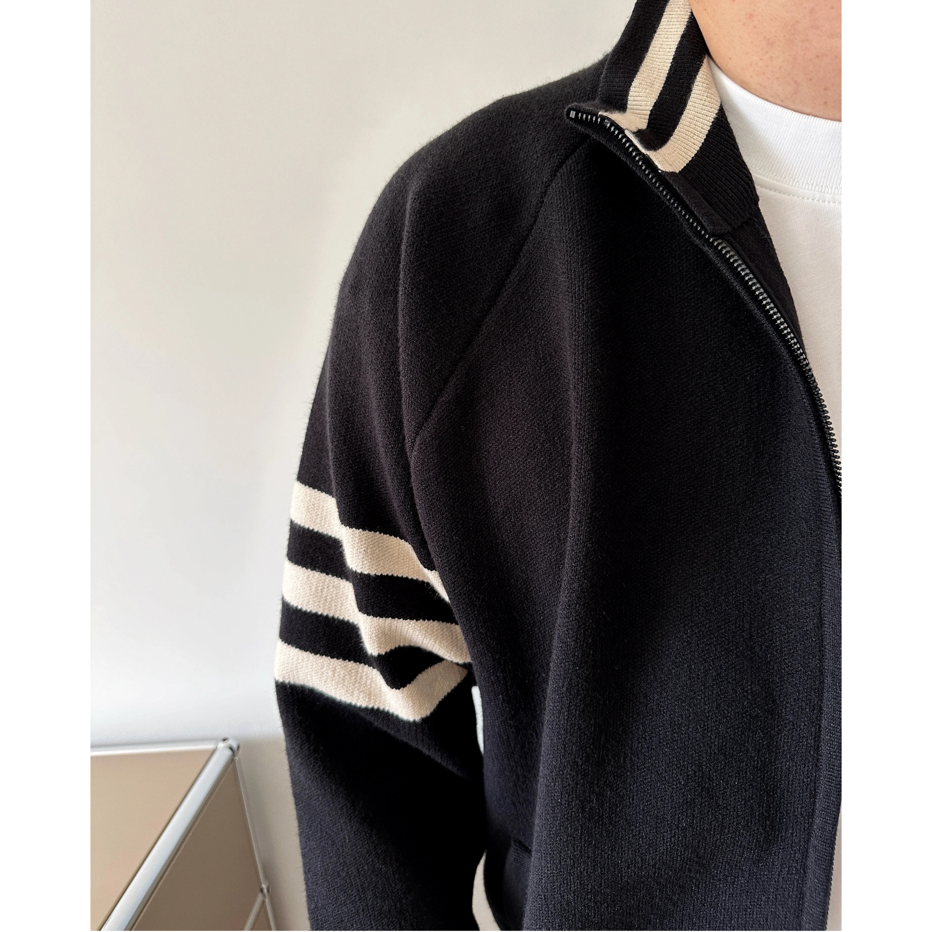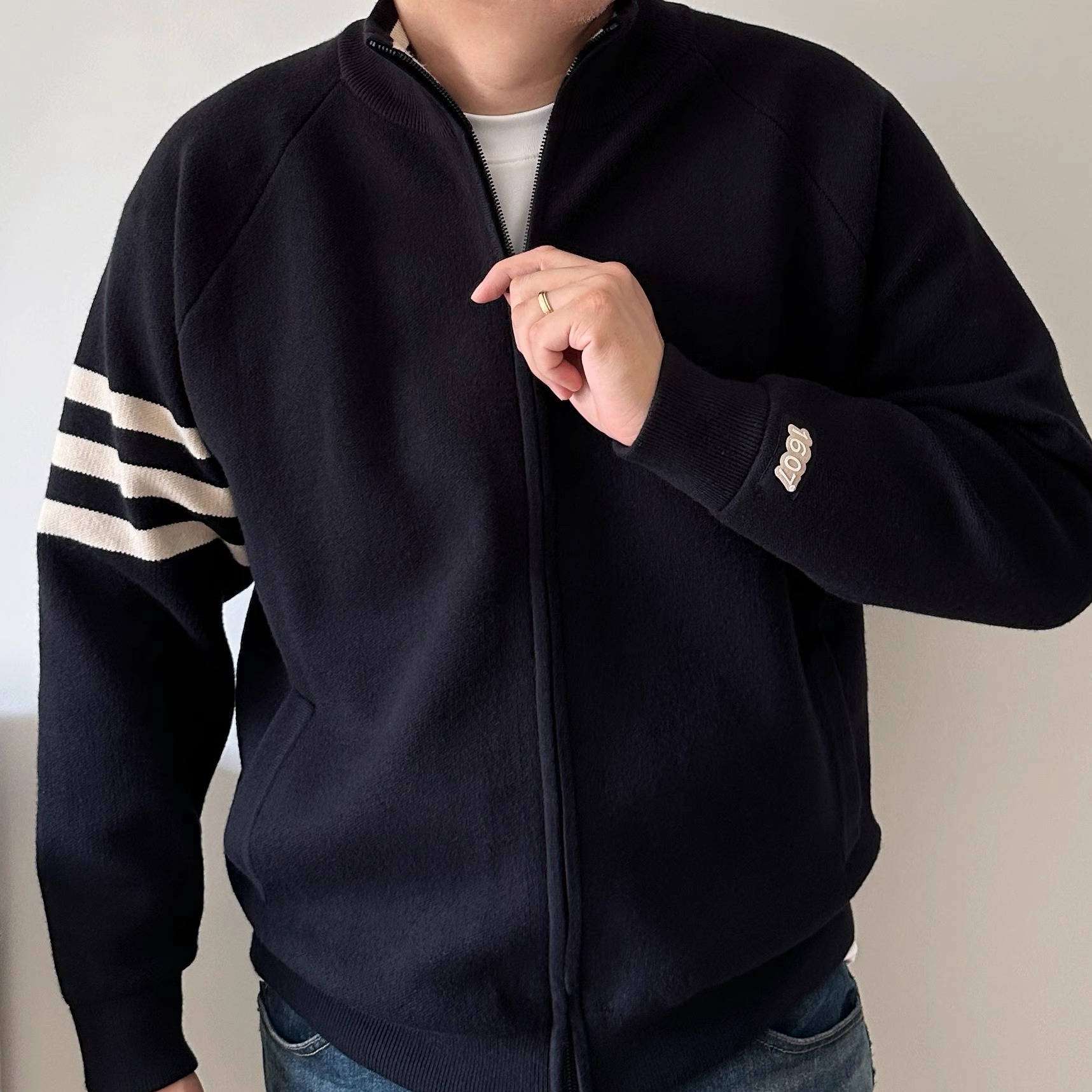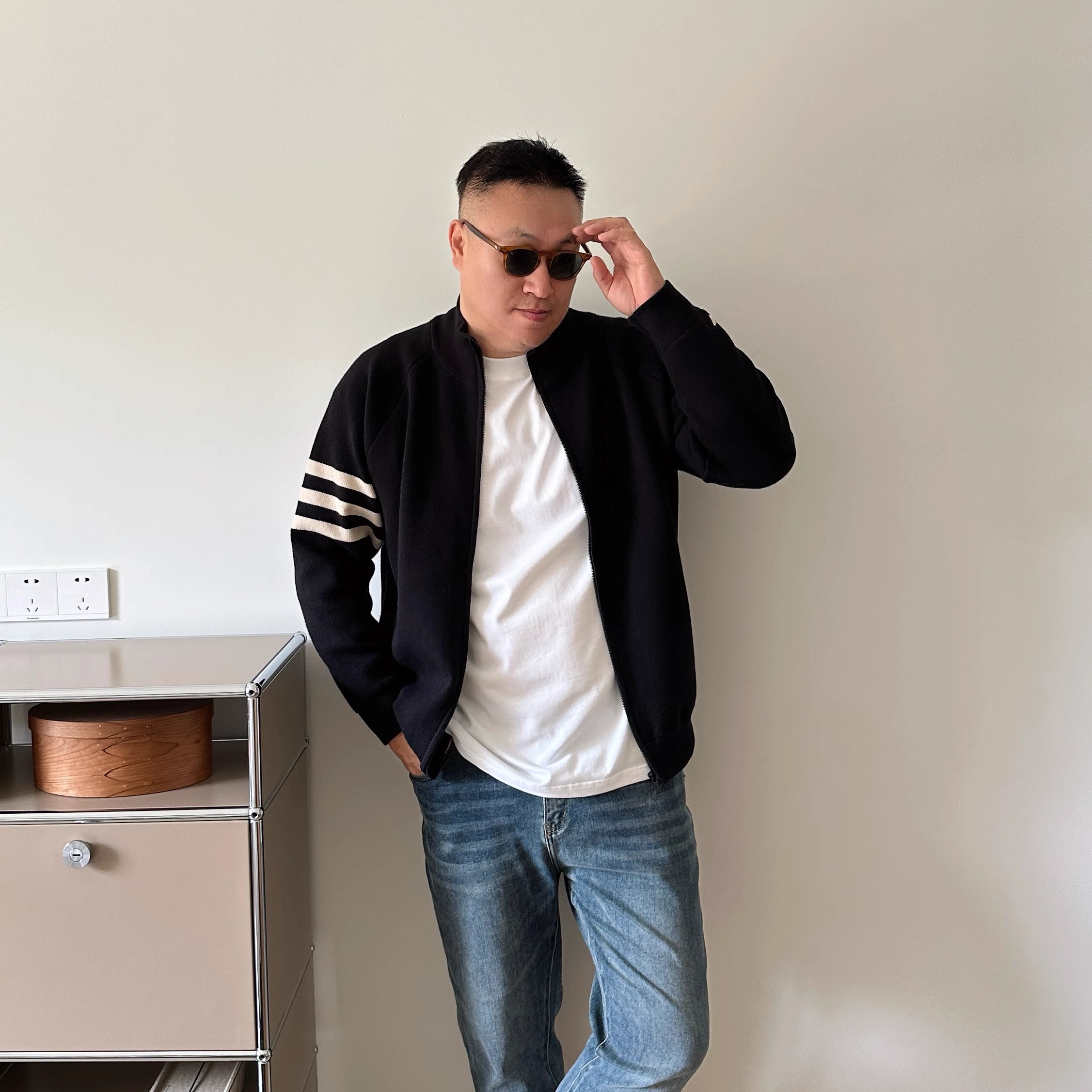 DAEVU大码男装秋冬新款三道杠加肥加大男士休闲立领开衫毛衣外套