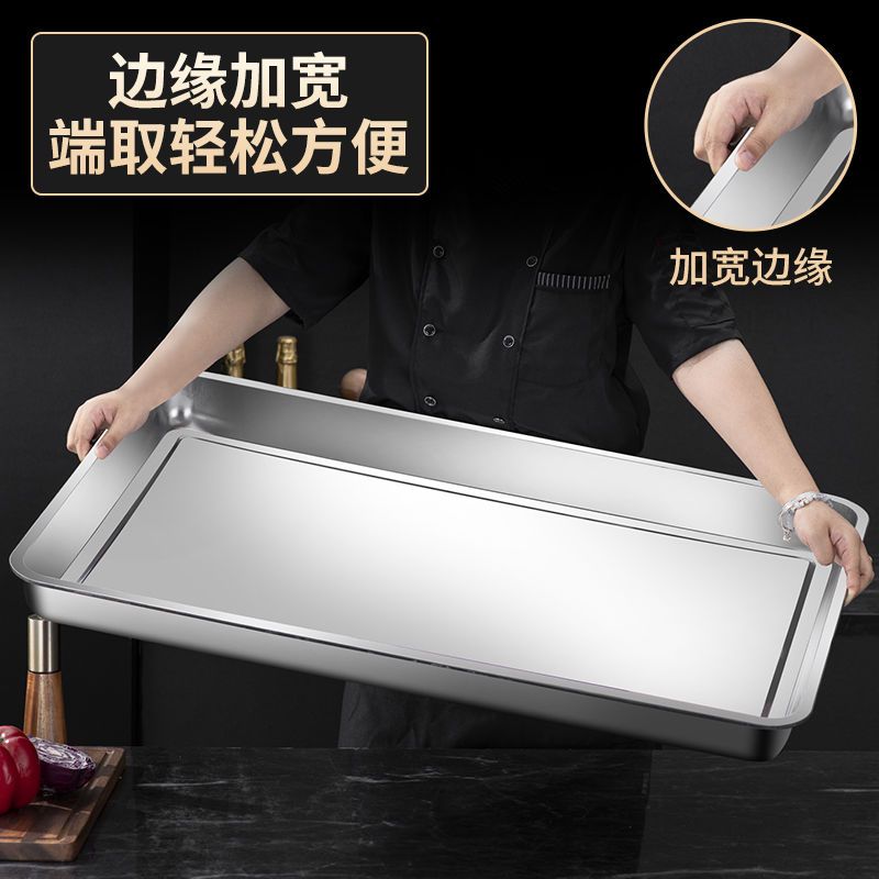 不锈钢托盘长方形托盘餐盘方盘 烧烤盘平底蒸鱼盘子蒸饭盘 水果盘