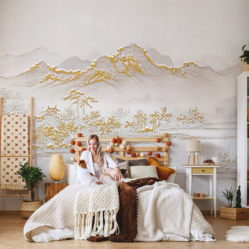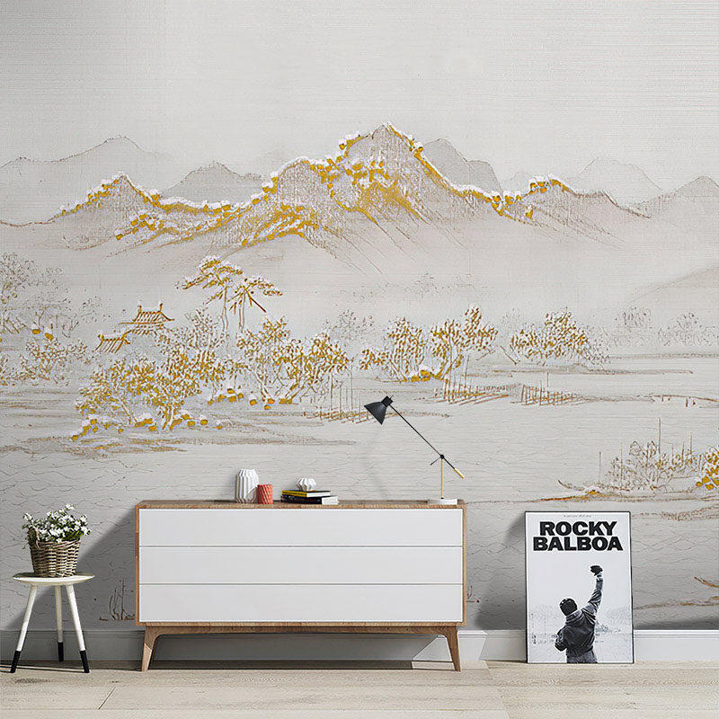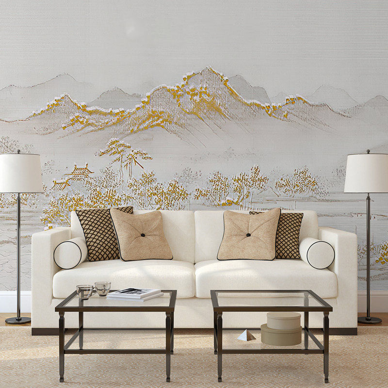 3d现代新中式客厅电视背景墙壁纸山水浮雕卧室沙发墙布无缝壁布