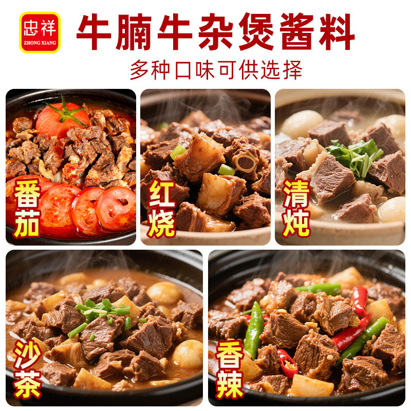 忠祥牛腩酱广式牛腩煲底料商用酱香牛杂料理包汤底火锅底料调料