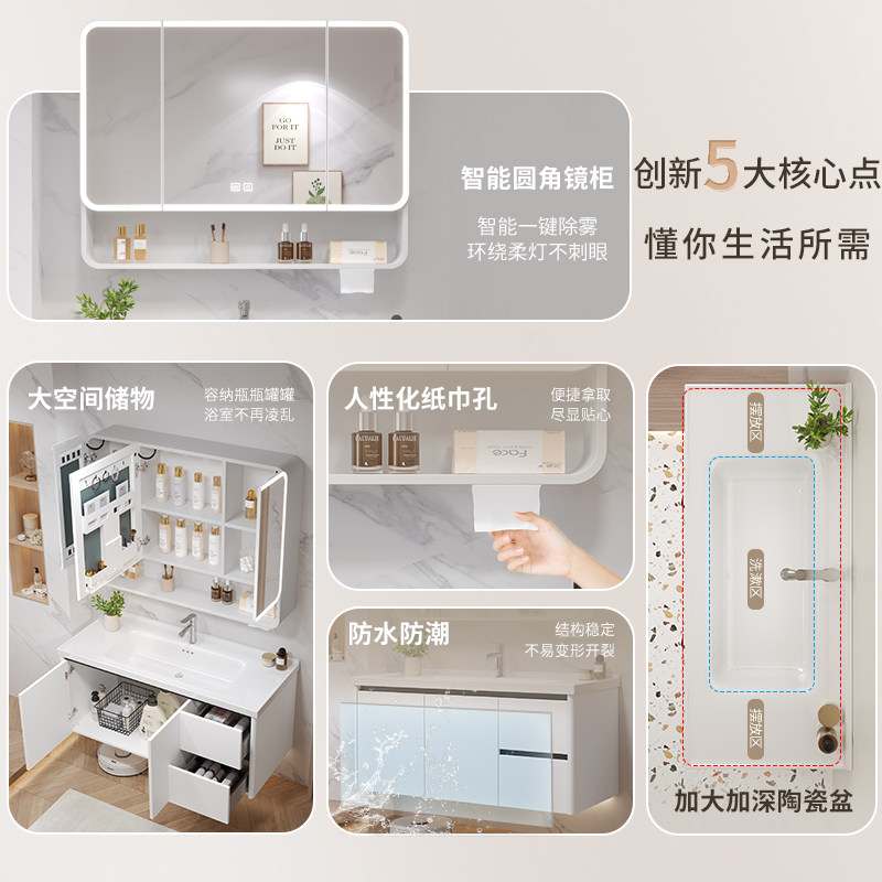 蜂窝铝合金陶瓷一体盆浴室柜组合