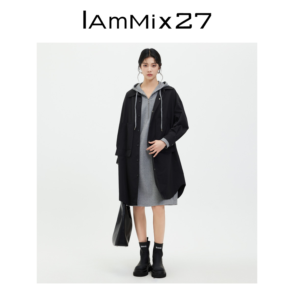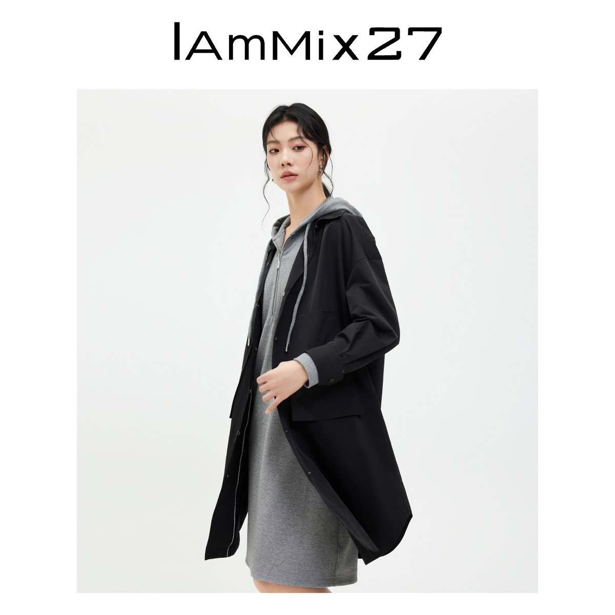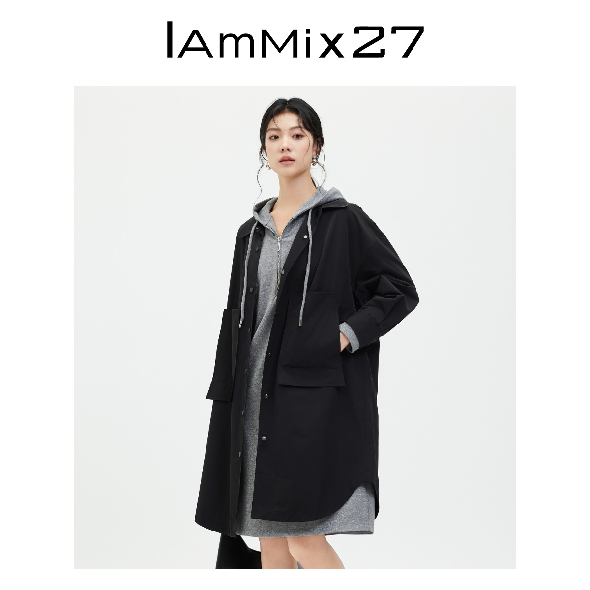 iammix27中长款翻领风衣外套