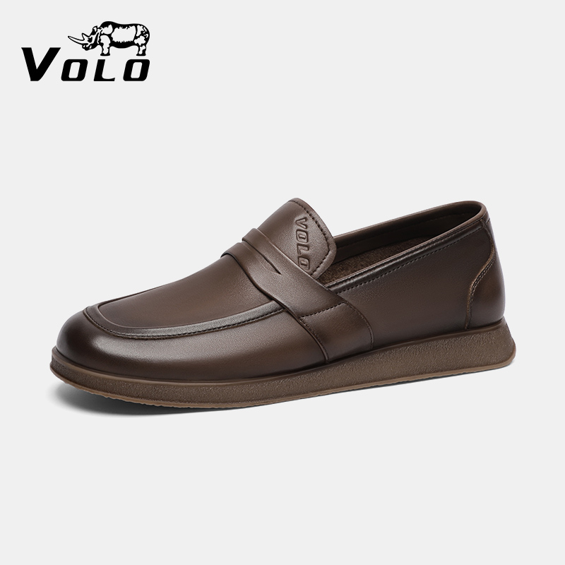 VOLO犀牛一脚蹬男鞋真皮春季牛筋底皮鞋男士真皮商务休闲套脚软底