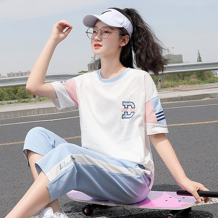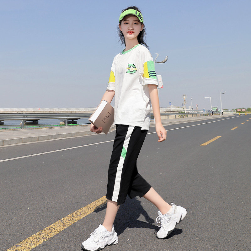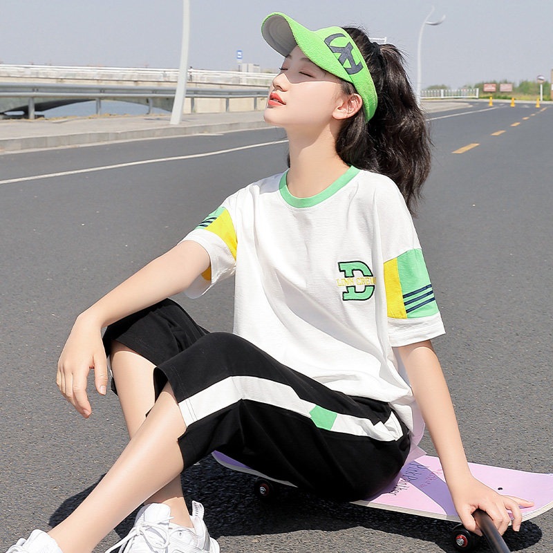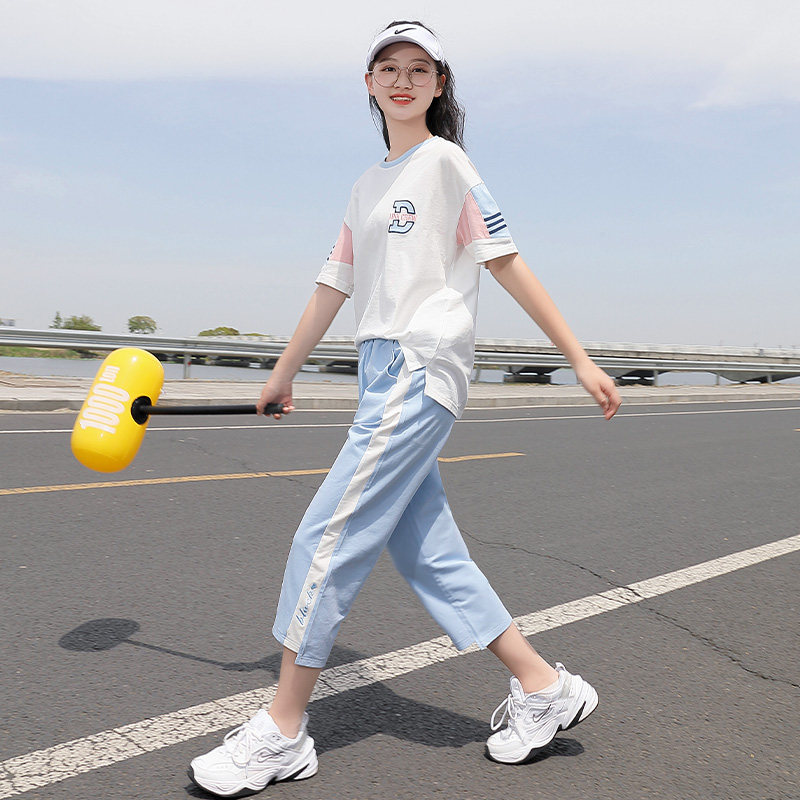 初中生运动套装女夏装中学生新款少女两件套运动装大童学院风休闲
