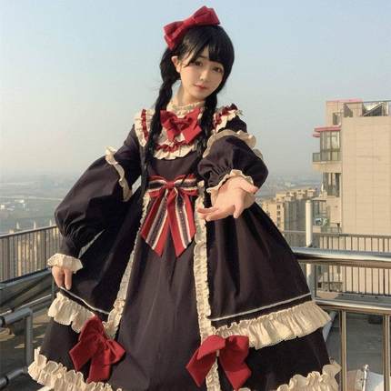 冬季lolita裙子白雪姬古典少女秋冬加厚长袖洛丽塔op连衣裙正品