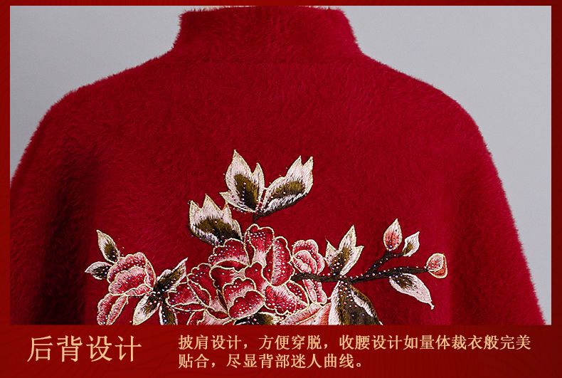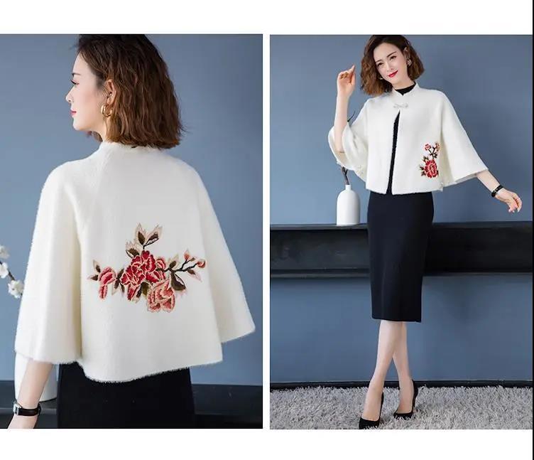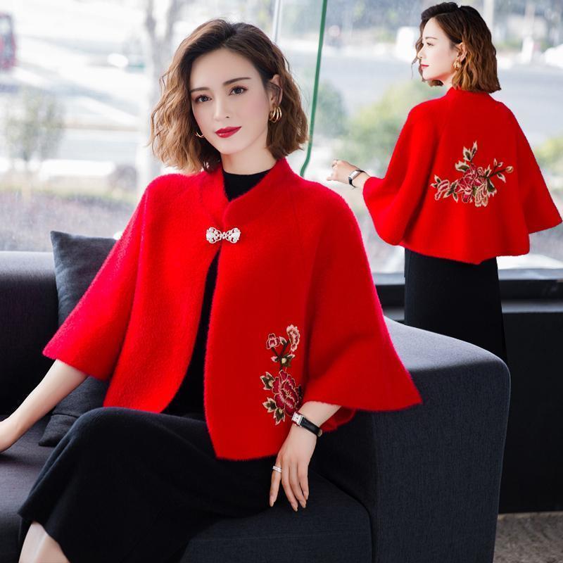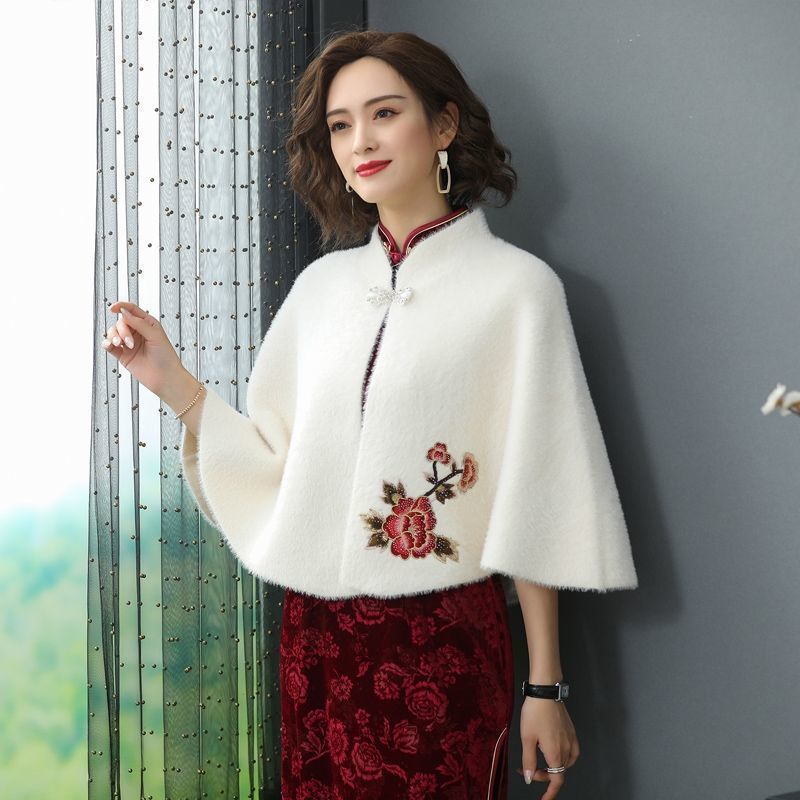 水貂绒披肩外套女斗篷短款秋冬时尚高档搭配旗袍外搭加厚刺绣坎肩