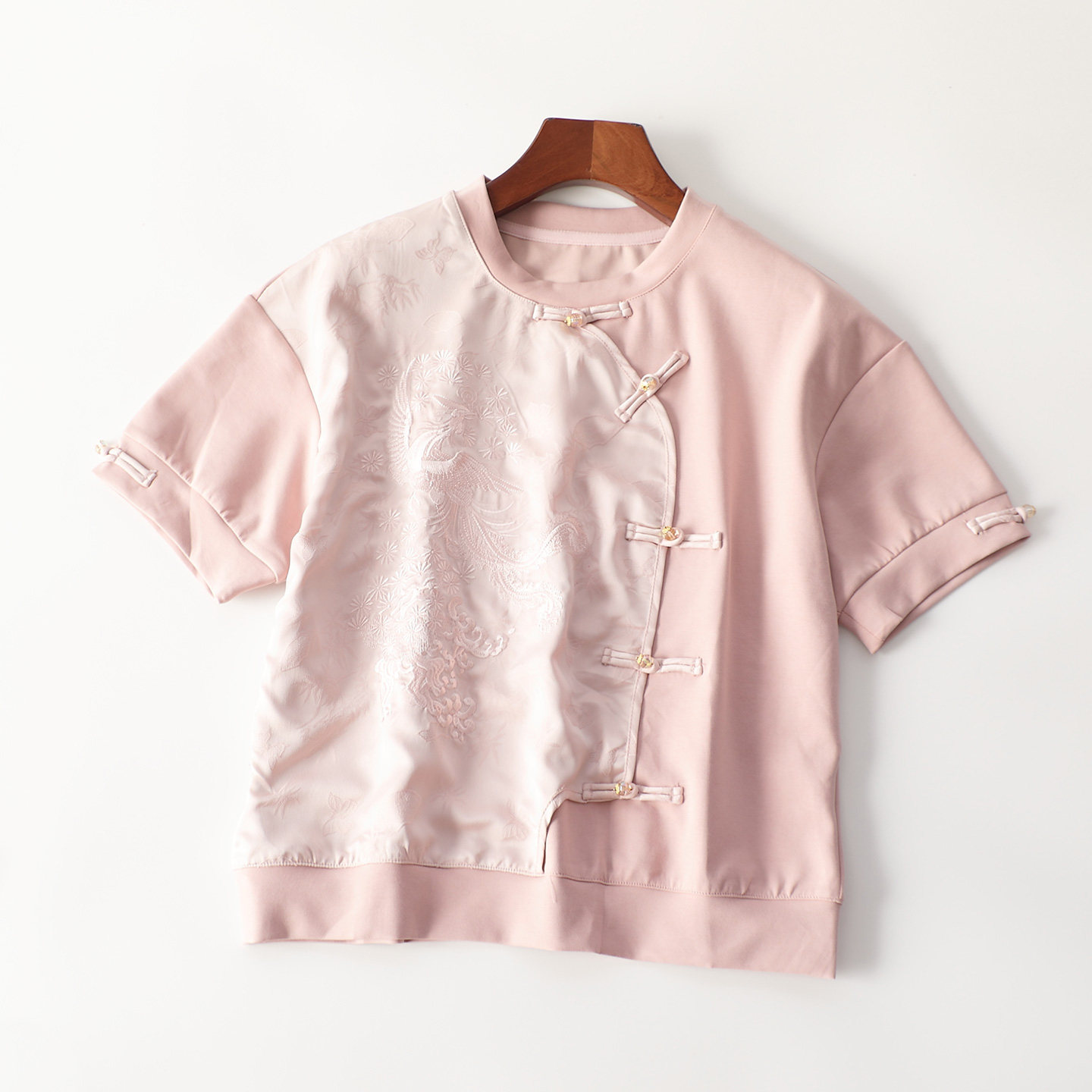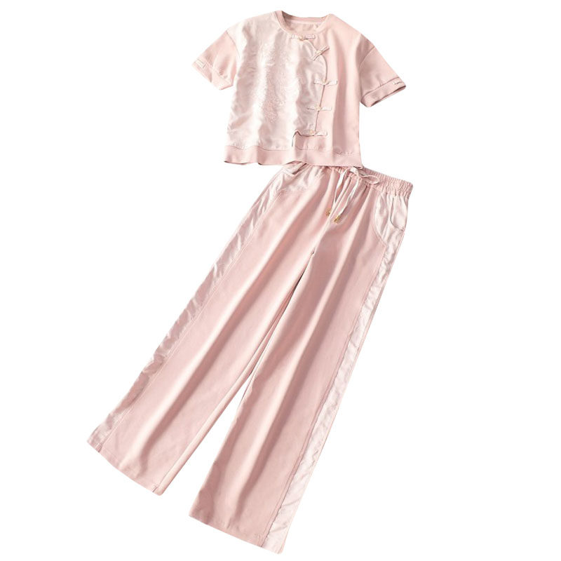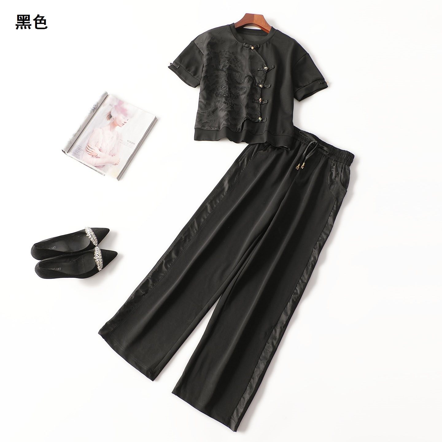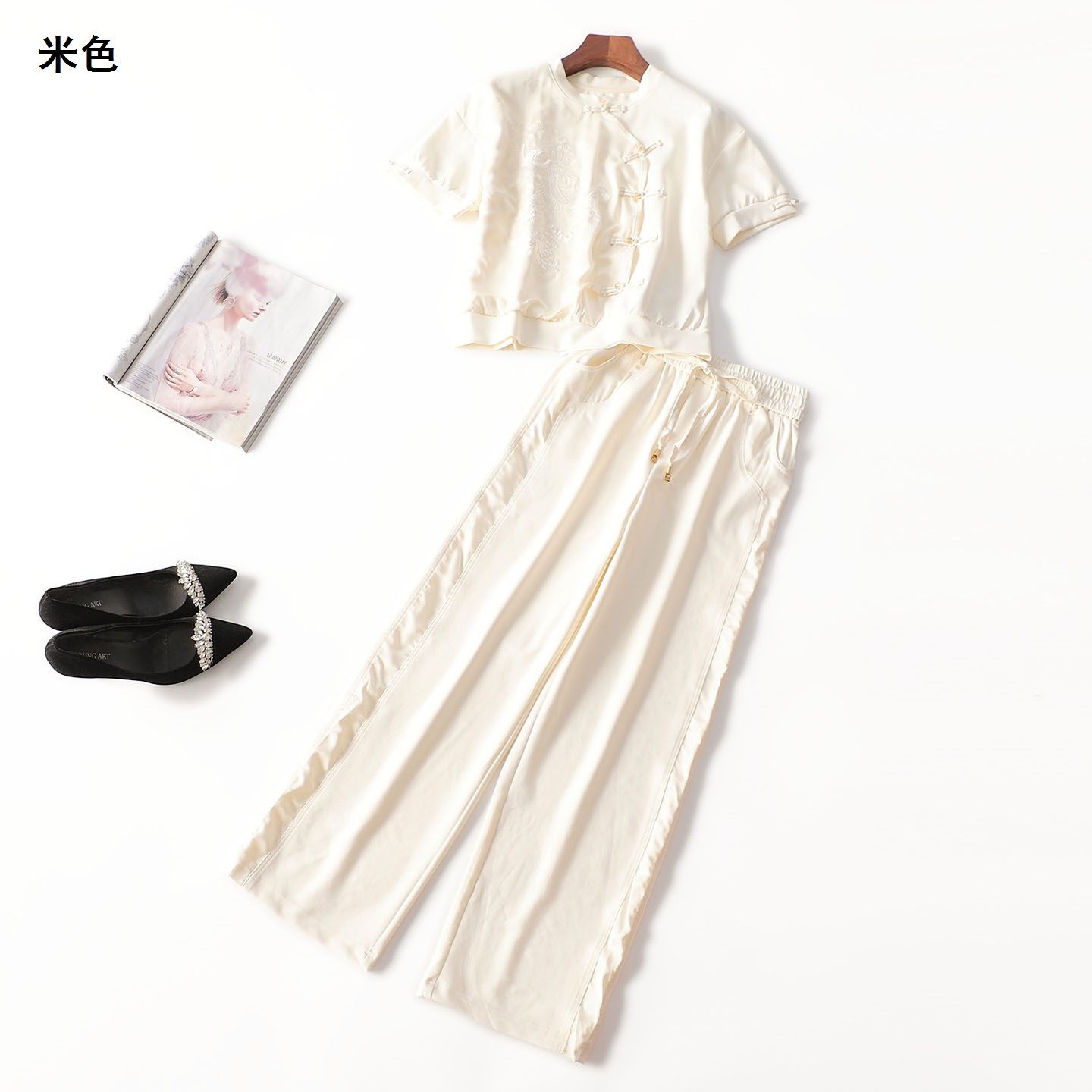 411580 夏上衣裤子套装 女绣花长款短袖圆领现货