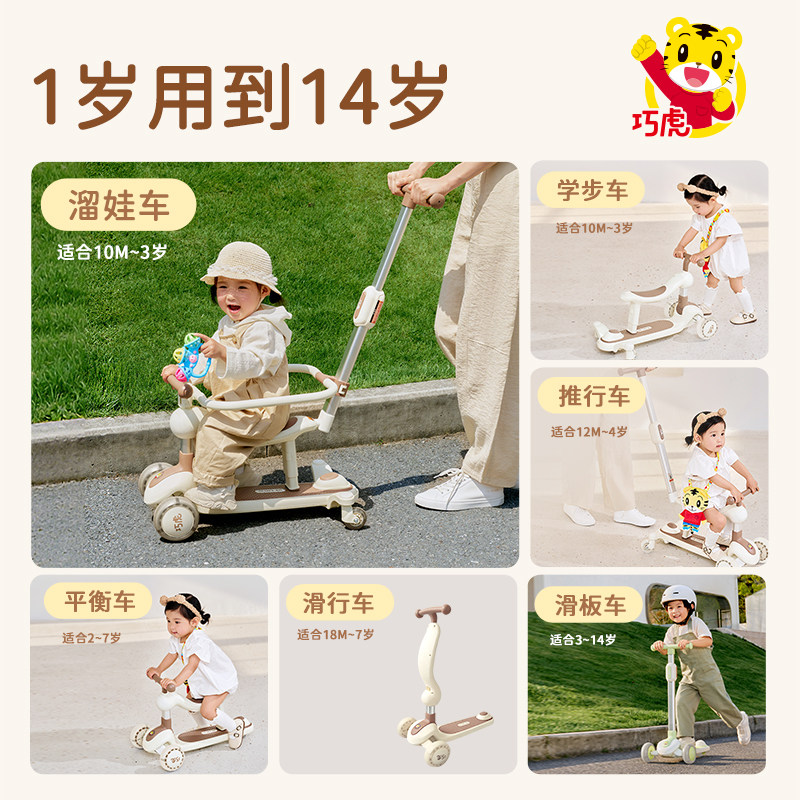 巧虎儿童六合一滑板车1-3岁可折叠踏板滑滑车男女宝宝溜溜车坐骑