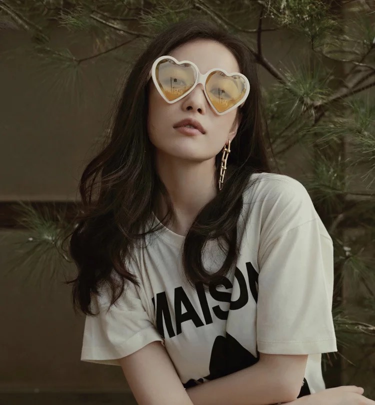 古着复古日系软妹爱心粉色少女太阳镜韩国原宿街拍亲子桃心墨镜女