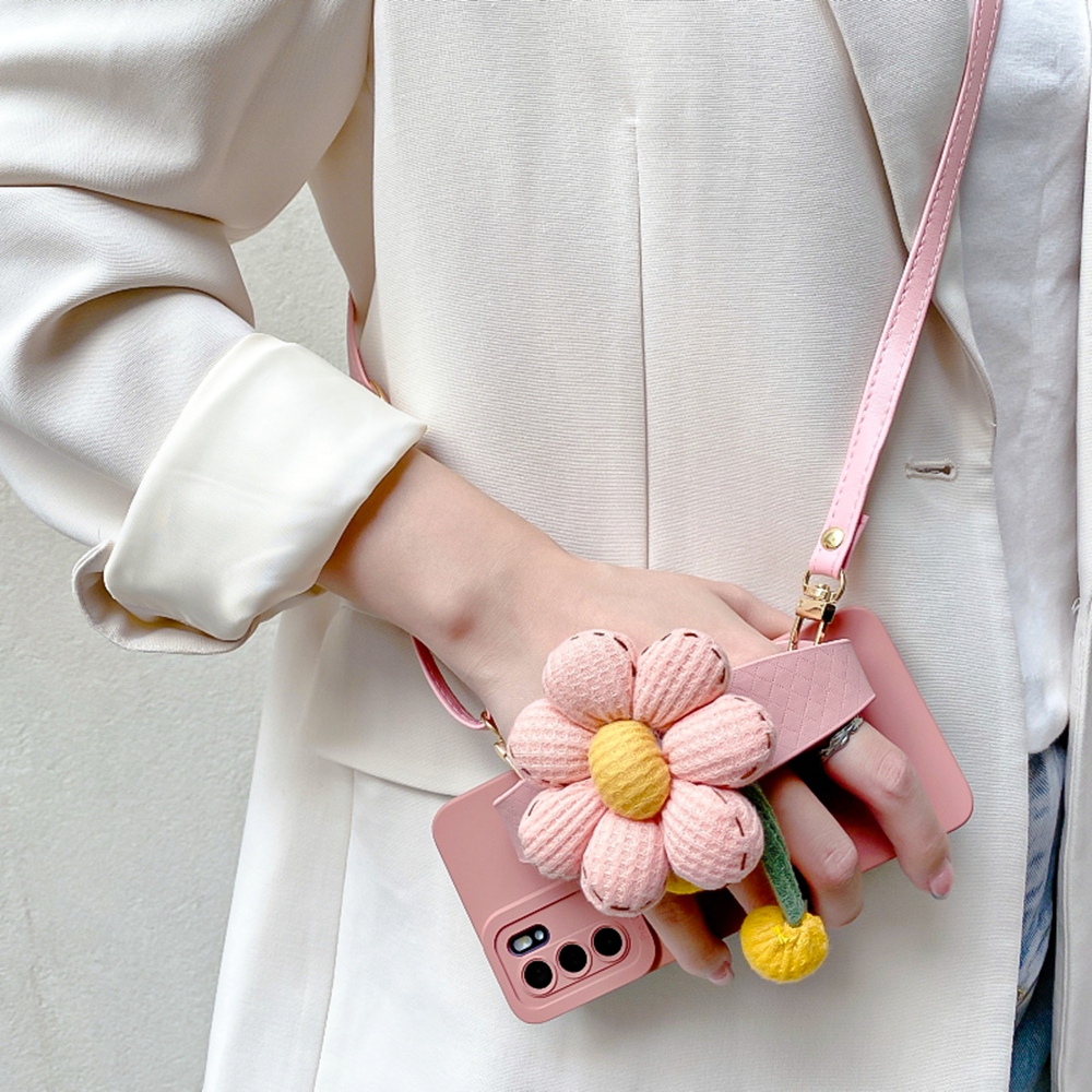 韩风ins南瓜花朵手腕带适用iphone14promax苹果15手机壳13/12/11硅胶xs/xr简约8plus个性7P防摔7/8/SE2女6sp