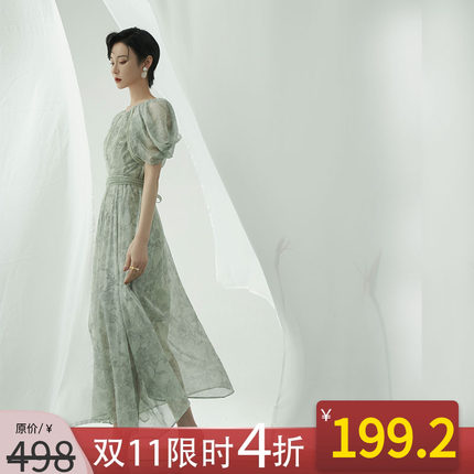 NANASTORE连衣裙女2024春季新款法式雪纺碎花裙宽松收腰长款裙子