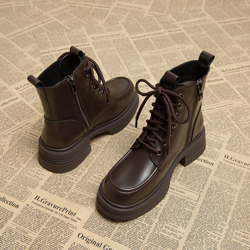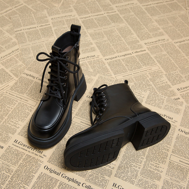 马丁靴子女秋冬季2025新款爆款法式短靴女厚底瘦瘦靴春秋高跟单靴