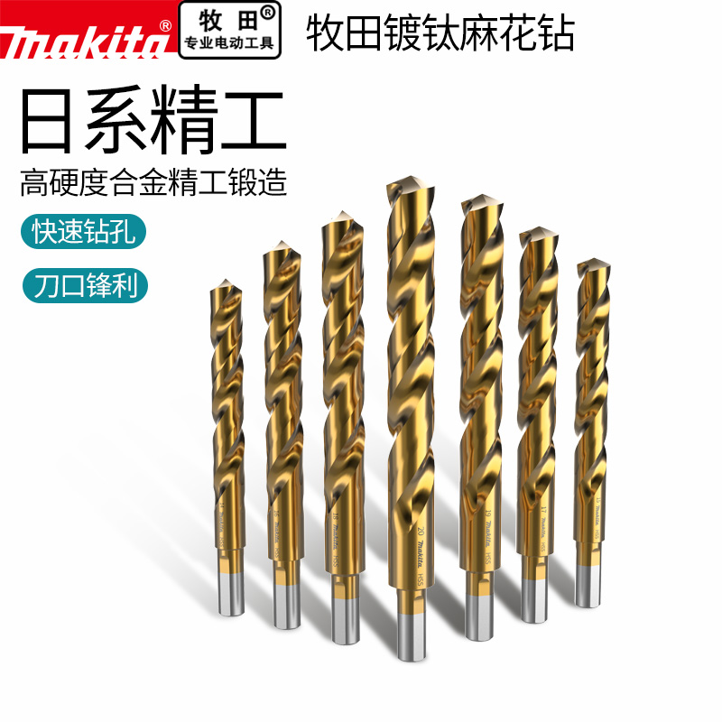 makita牧田镀钛钻头金属打孔不锈钢合金电钻转头多功能麻花钻套装