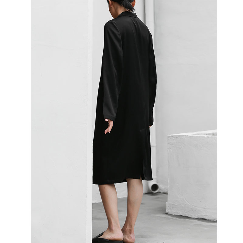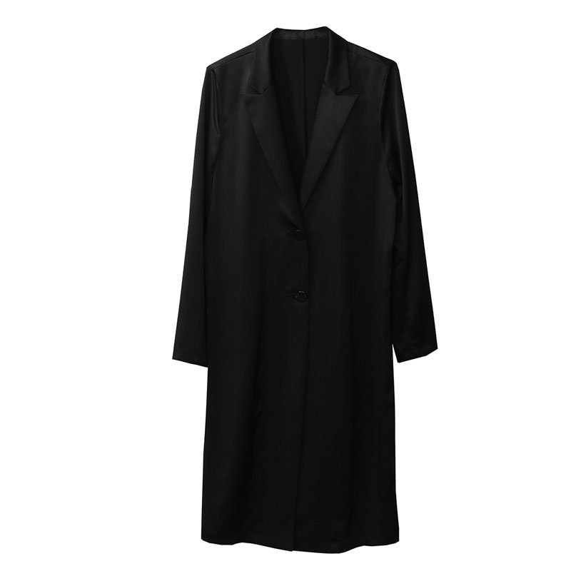 春秋女士黑色简约原创设计中长款西装薄女休闲外套显瘦宽松风衣