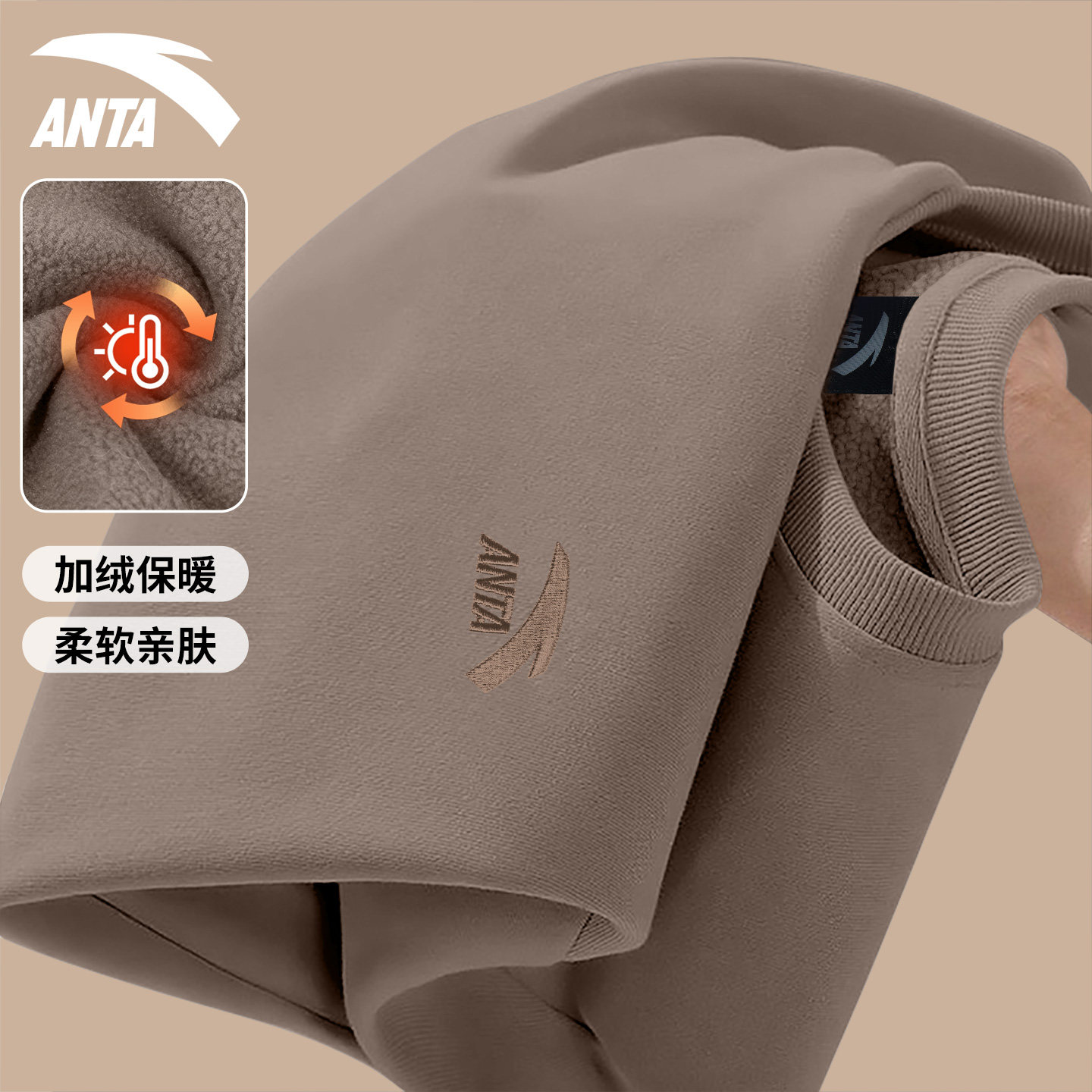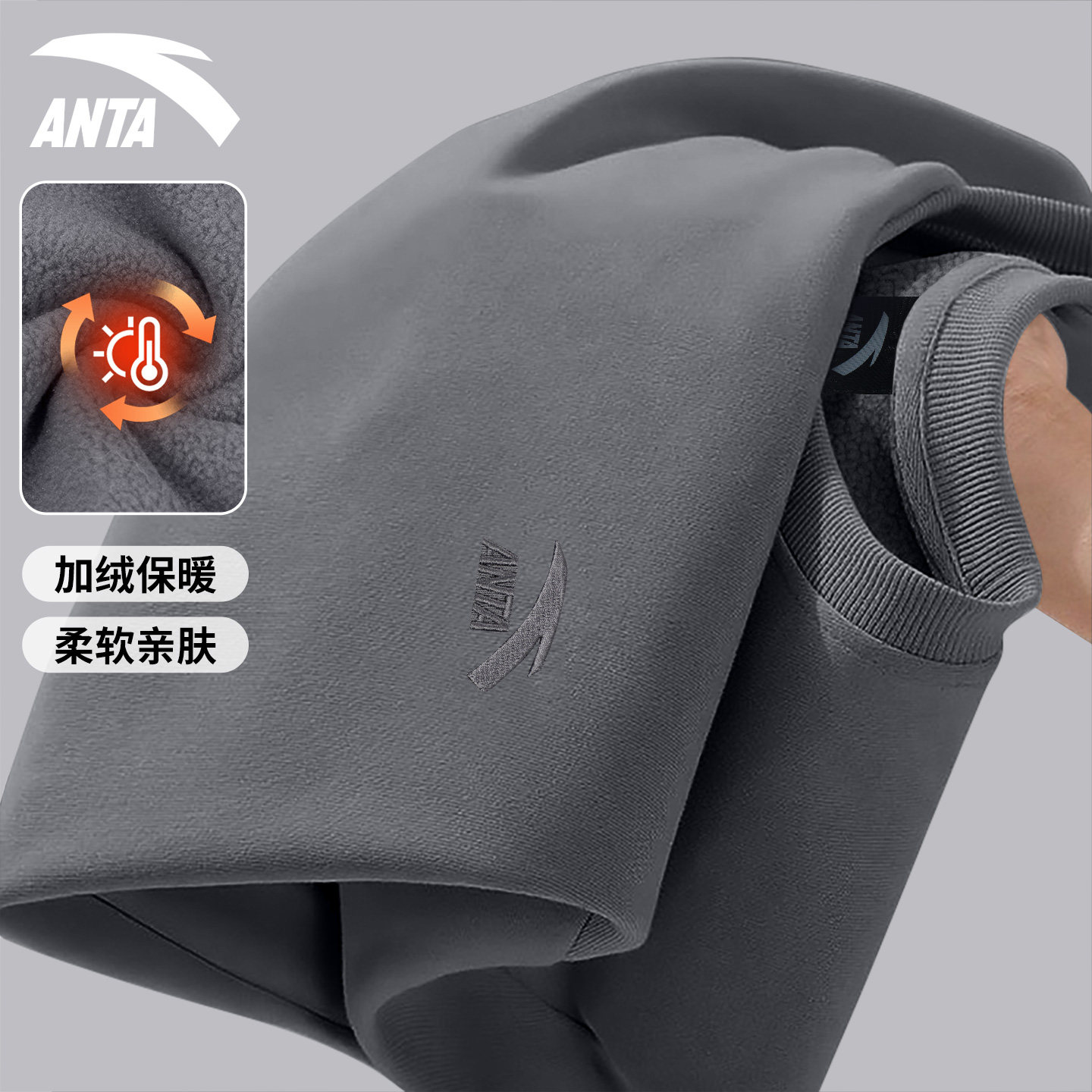 安踏卫衣男女款加绒宽松长袖内搭