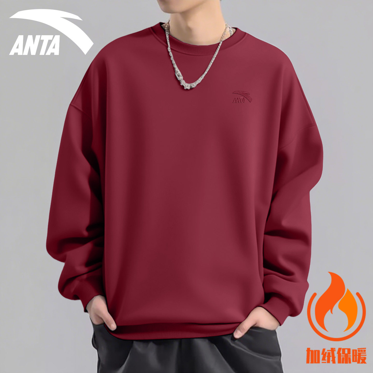 安踏卫衣男女款2025冬季加绒套头衫学生潮流宽松休闲长袖无帽外套